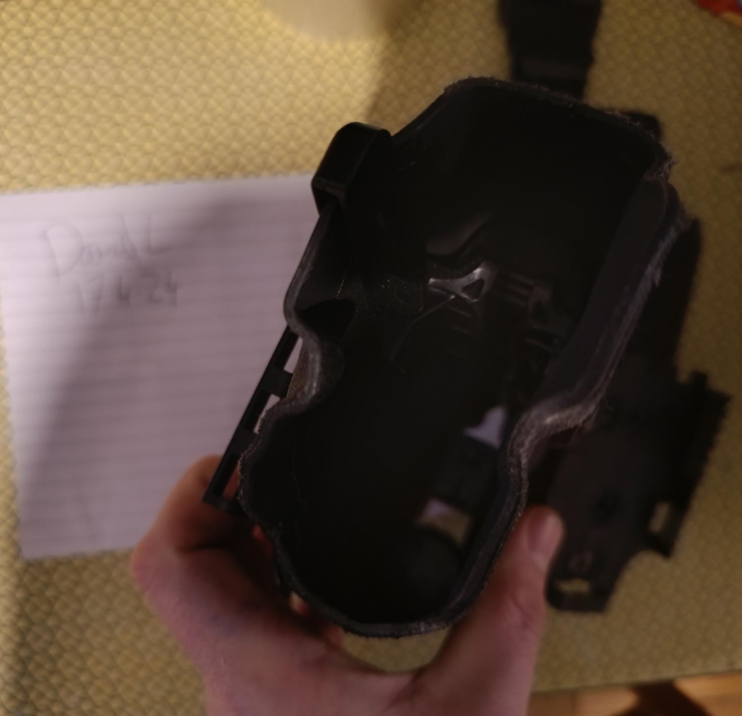 Safari land clone Al's holster, fits m17 with x300 or 2011 with x300. Wrapped in multicam black, qls, midride and leg strap included. £45