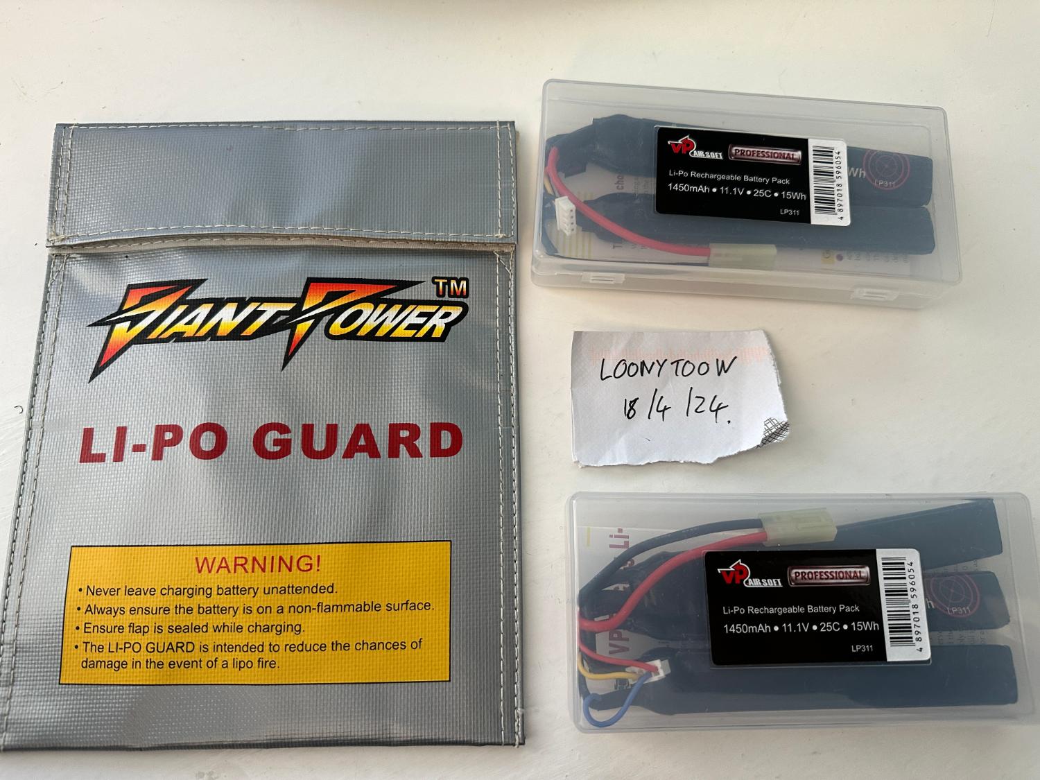 2 x VP Racing Battery 11.1v 1450mAh 25C LiPo Crane Stock Battery - Tamiya & LiPo Bag