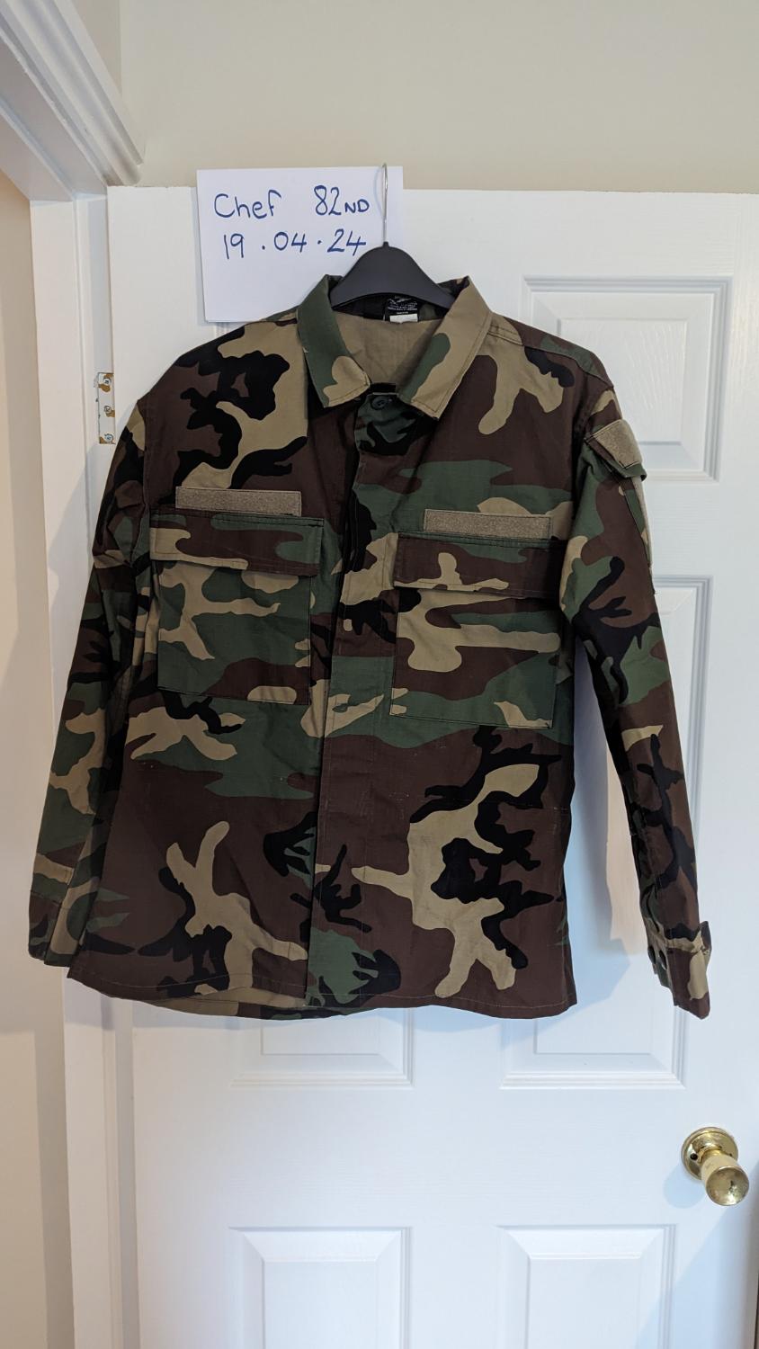 I have for sale a brand new never worn US Marine Modded Raider M81 Woodland BDU Shirt size Medium Regular 37 to 41 chest , material is ripstop . I bought this straight from the US it has been modded by an ex US Marine who did it for me ,shirt is from genuine U.S. contract supplier , shirt has had its two lower pockets have be swapped with the breast pockets , breast pockets have been put on to the upper arms, the right velcro has been added to the arm pockets and chest for name and moral patches .