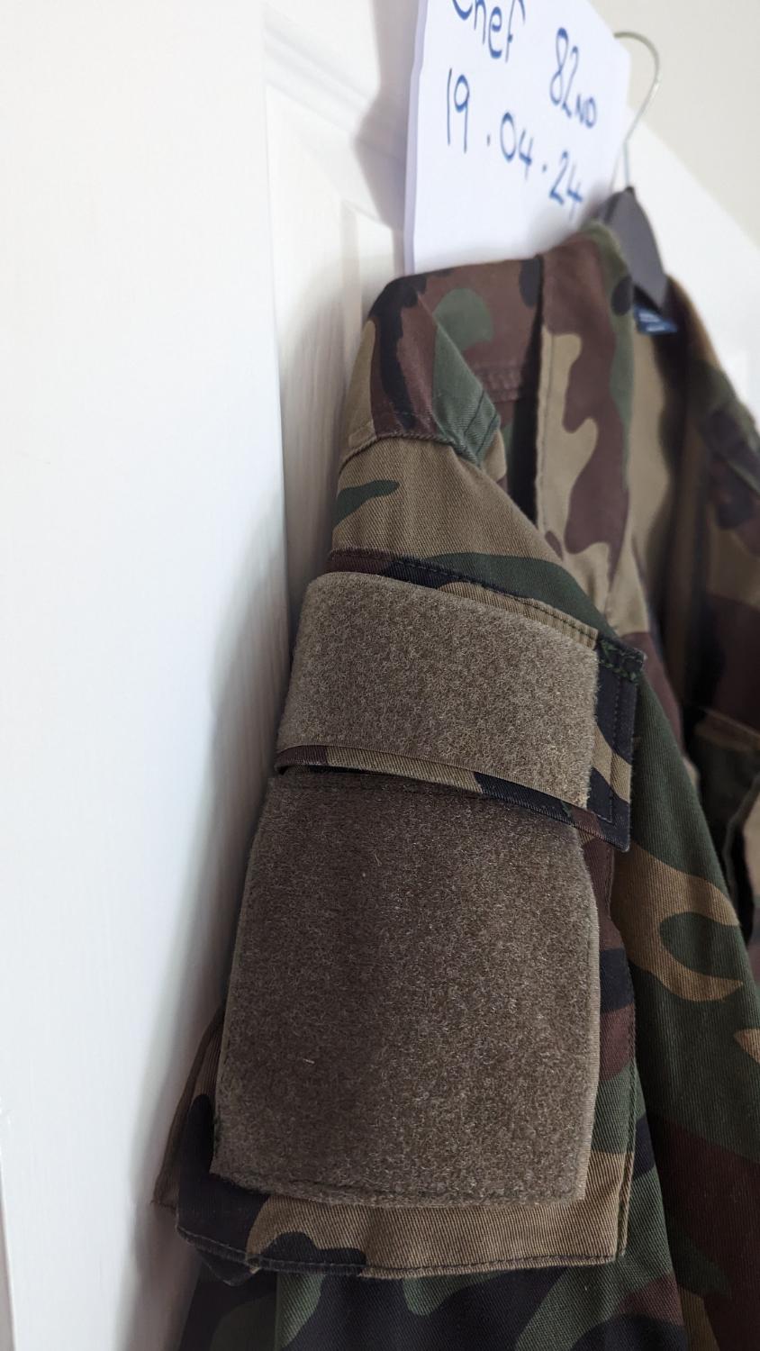 I have for sale US Marine Modded Raider M81 Woodland BDU Shirt size Large Regular 41 to 45 chest , Condition used twice but in excellent condition no rips or tears , I bought this straight from the US it has been modded by an ex US Marine who did it for me shirt is made by proper a US government supplier, its has had its two lower pockets have be swapped with the breast pockets , breast pockets have been put on to the upper arms, the right velcro as been added to the arm pockets and chest for name and moral patches .
