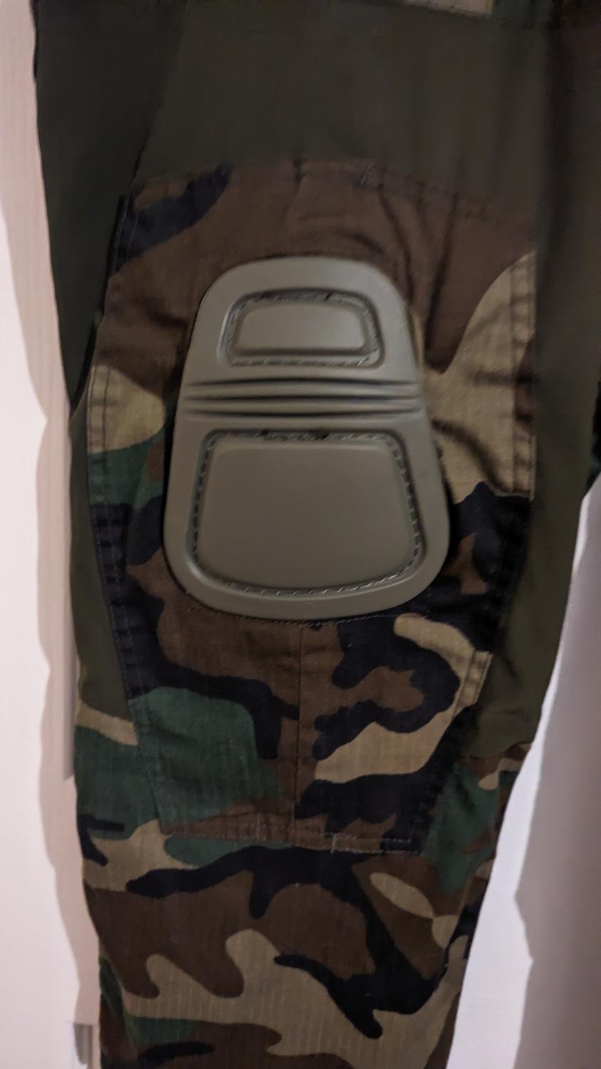 Condition slightly used , size 38 waist very good pair of trousers made from ripstop US woodland style camo , these are the Elite Gen2 very similar to the Crye G3 trousers in cut and style cames with knee pads .