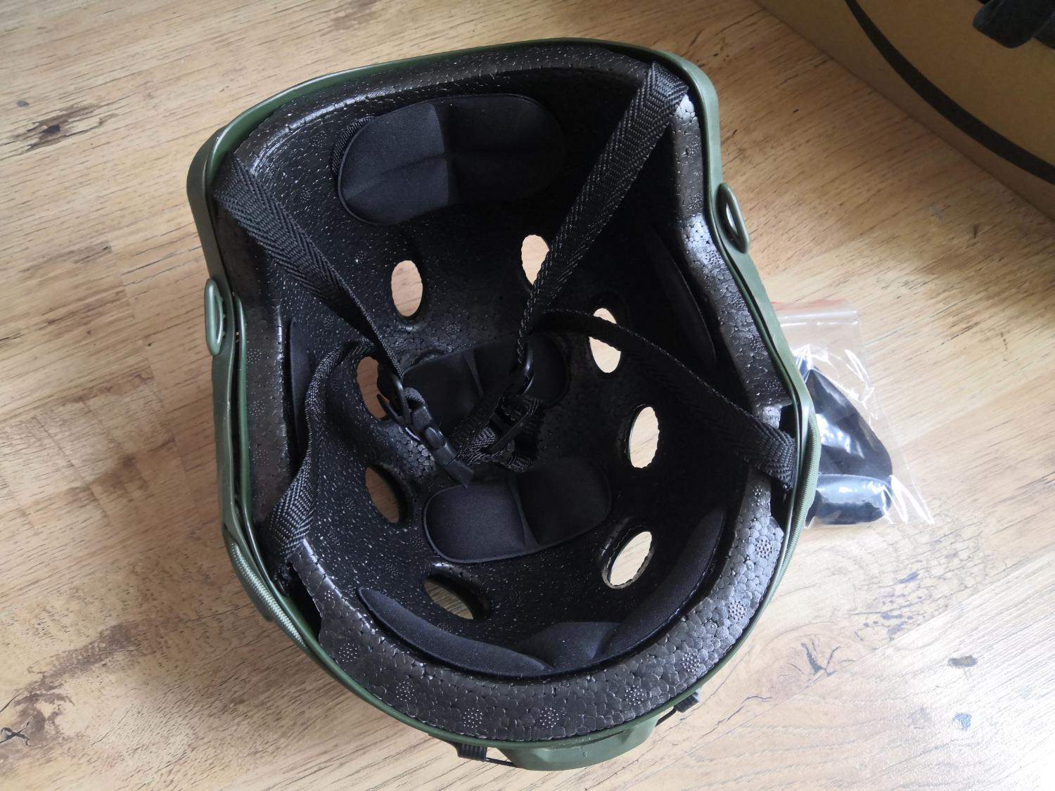 This helmet hasn't been worn at all. It does have two small drill holes in the rear which I was hoping to attach a mask to.