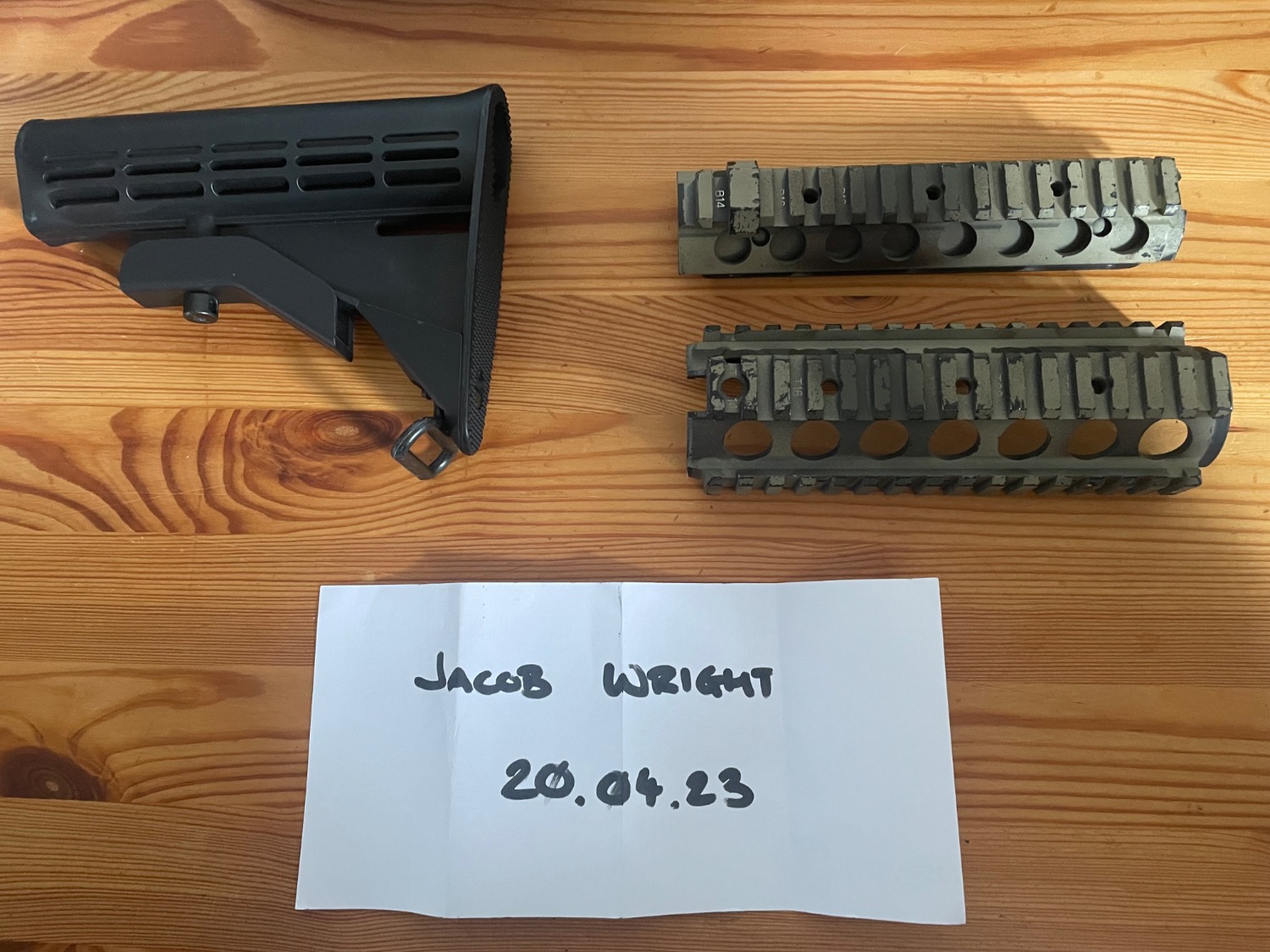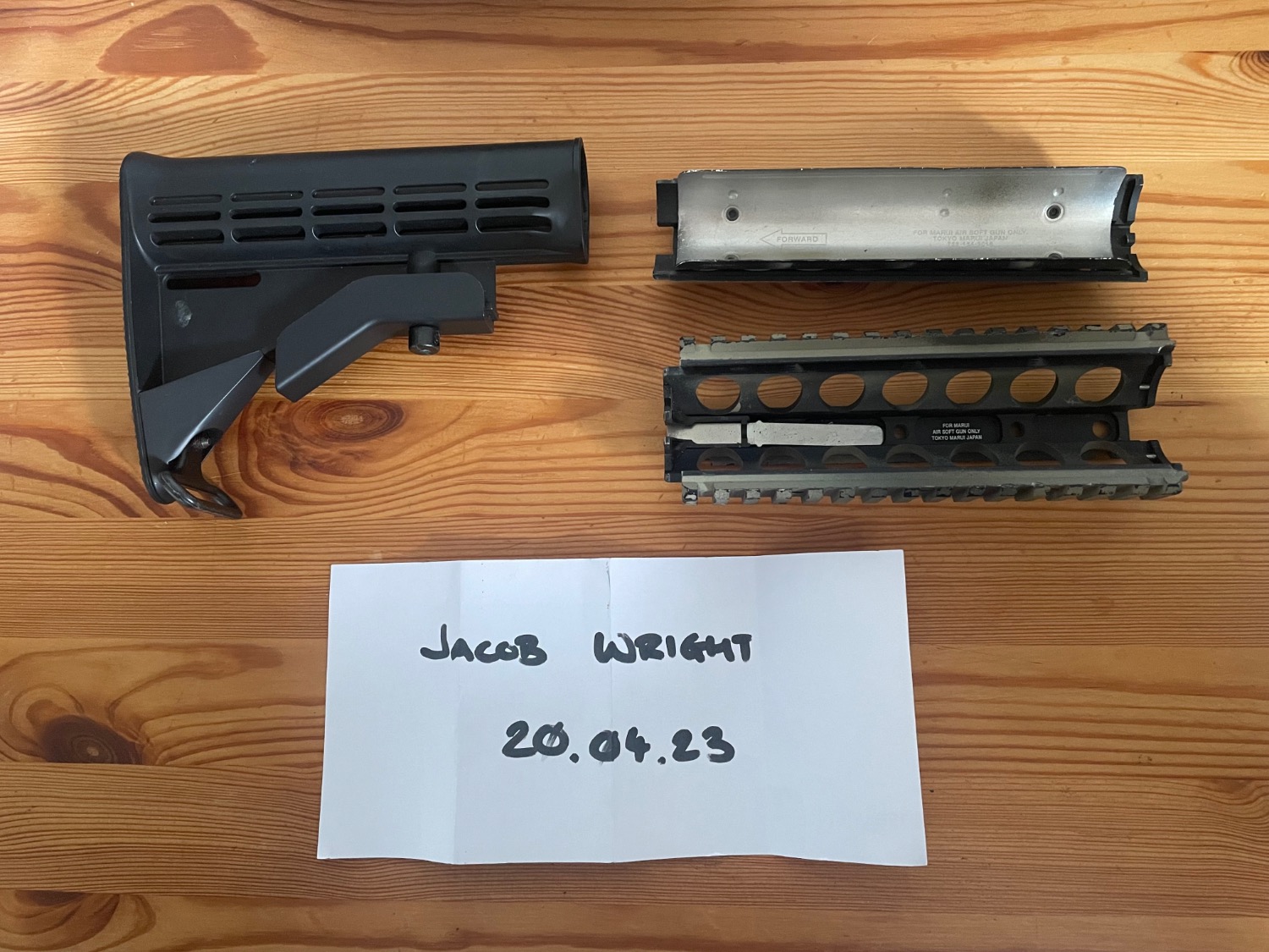 Up for sale is a TM 'KAC" style rail that has been painted. Was bought for an L119A1 project but used a different one instead so now surplus to requirements. Also have an M4 LE style stock that is in very good condition.