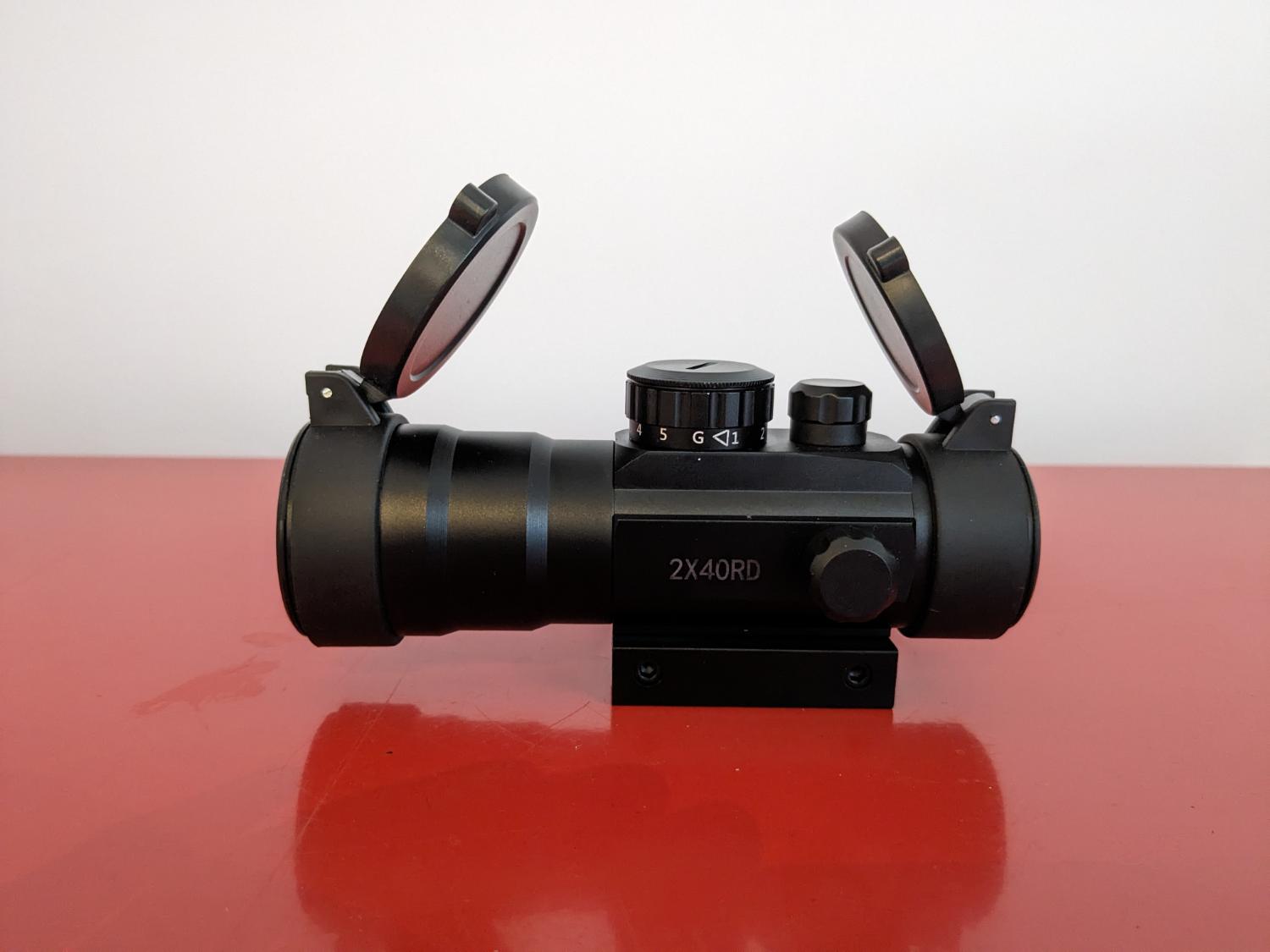 Great red dot, really nice and clear optic. Gives 2x magnification so handy for spotting as well.