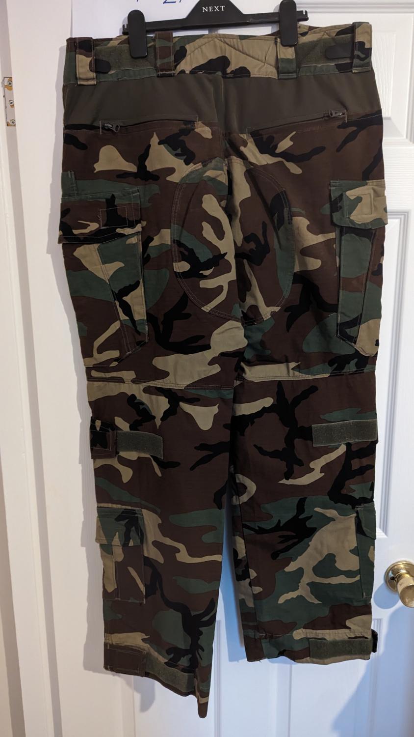 Trousers are the G3 Crye style very comfortable to wear no rips or marks made from genuine US Woodland material .