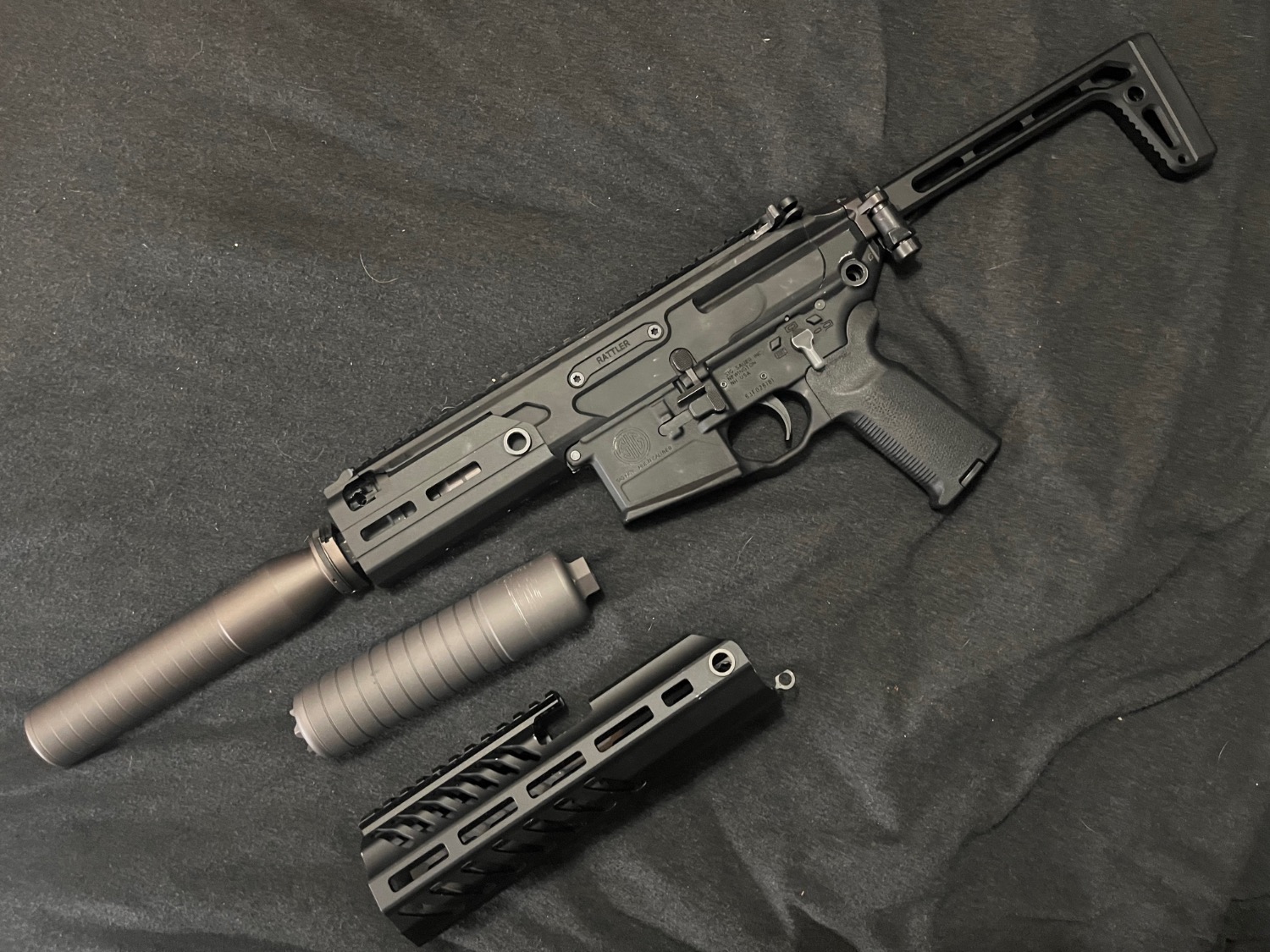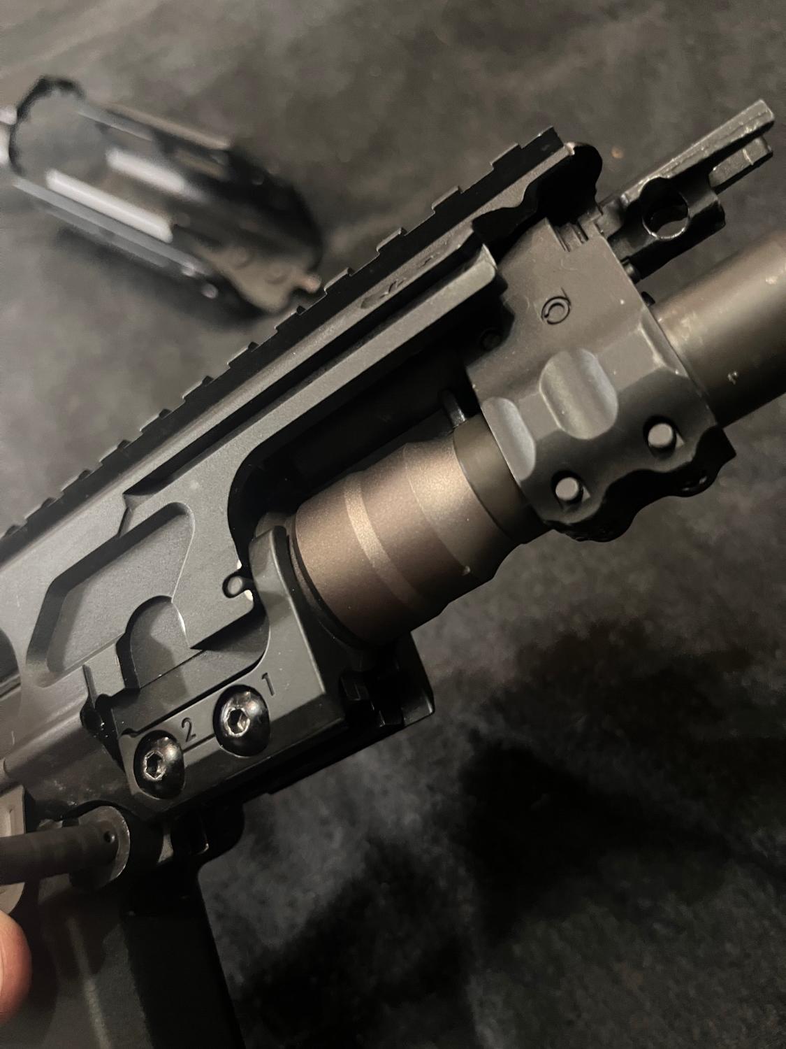- Airsoft Artisan SD suppressor is scratched from some mlok grip screws foolishly.