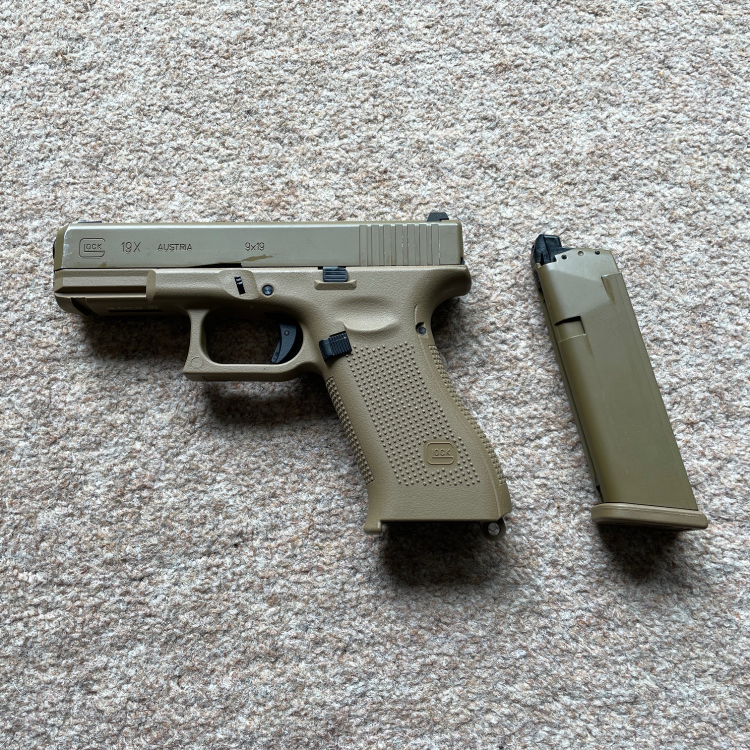 UMAREX Glock 19X. With one mag and original box. Works perfectly, No longer wanted. Minor signs of use but VGC. Approx 300 fps from memory Comes with holster also. £8 postage