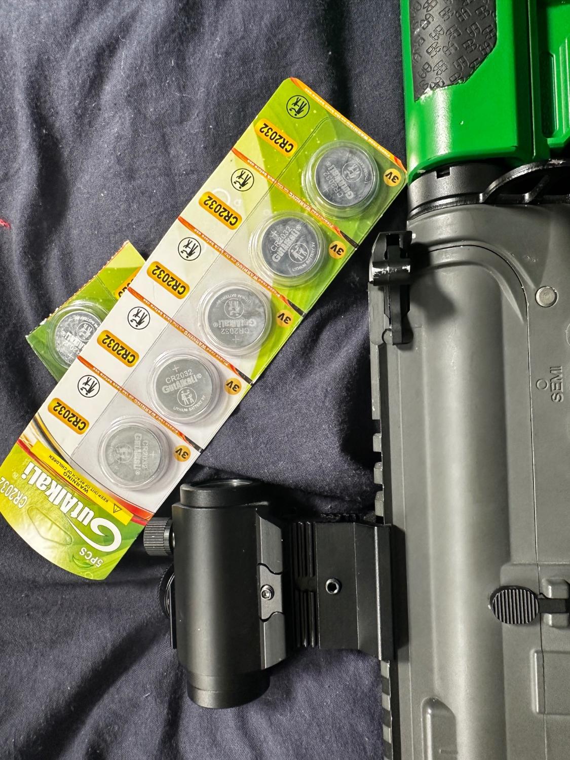 Batteries, charger, 1.0x red dot, 2xmags, foregrip