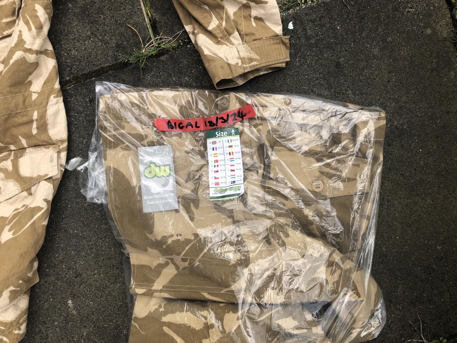 Surplus DDPM Gear. Cold Weather Hooded Smock Size Chest 104, £20. Jacket Combat. MVP. Size 190/120. £30. Trousers Wet Weather. MVP £20. Also DDPM work trousers 48” £10. Discount for multiple. Postage £5.