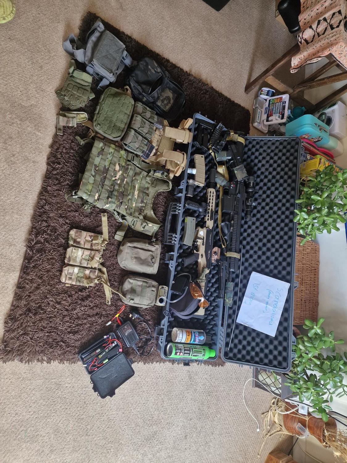 selling everything i own airsoft related too much to list but everything you see in the photos ALL SOLD AS A BUNDLE