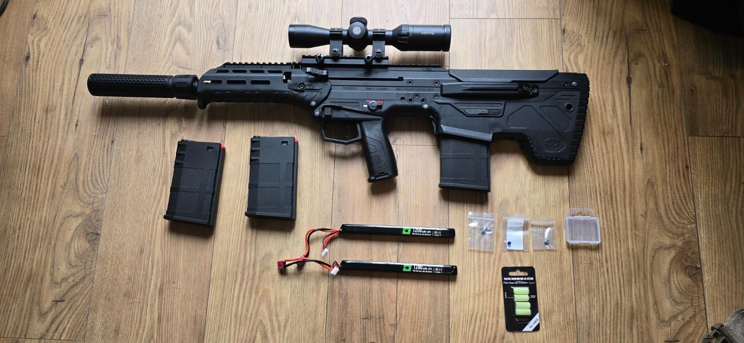 For sale/trade is my Silverback mdrx version 2. This was brand new 3 weeks ago but doesn't suit my play style unfortunately. Currently set up as a dmr but will come with the micro switch to turn back to aeg. Comes with X3 mags, 2 new batteries, pack of 70 degree buckings, spare nubs including the new hff nubs, new Hawke panorama 2-7x32 scope and riser, knights armament quick detach suppressor. Also includes box etc. may consider trades for high end sniper.. collection Biddulph st8 area