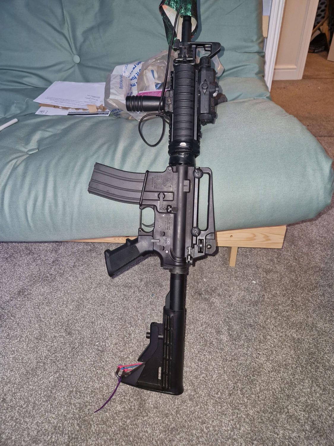 Hi all, looking to sell my MWS or trade it for a VFC M16A1-XM16E1. It's an extremely reliable gun and everything works as should and is overall just fun to use, but being an MWS, it does have minor recievor wobble aswell as on the handguard, which I attempted to resolve by using the ends of zipties as shims (scuffed I know, but did help) which is why the tape has been put there to cover it. It's fitted with a KAC RAS Rail with a VPG and a mock PEQ. Internally it's got a BAVTAC 140% return spring aswell as a Federal concepts NPAS so you can adjust it to whatever you desire. It comes with 4 Leak free mags, aswell as its original speedloader, a BAVTAC hop nub, and a spare 140% return spring. It also will have it's original box. Looking for 500 for it not including any fees on paypal. At the moment looking for collection only from Reading.