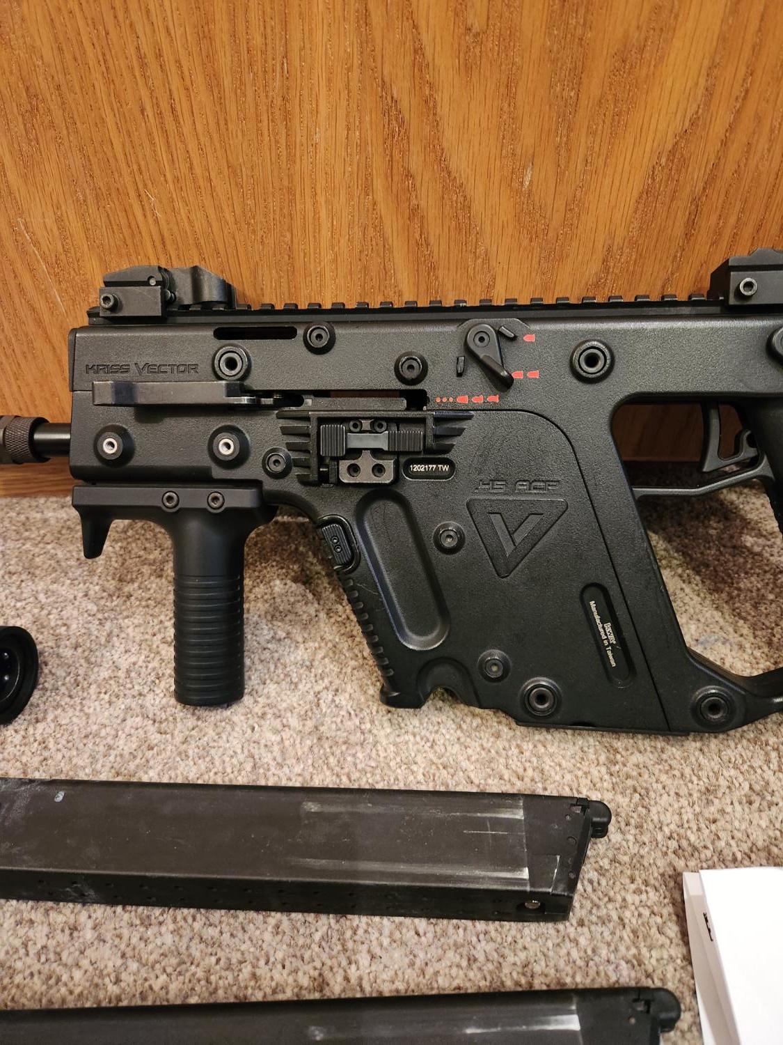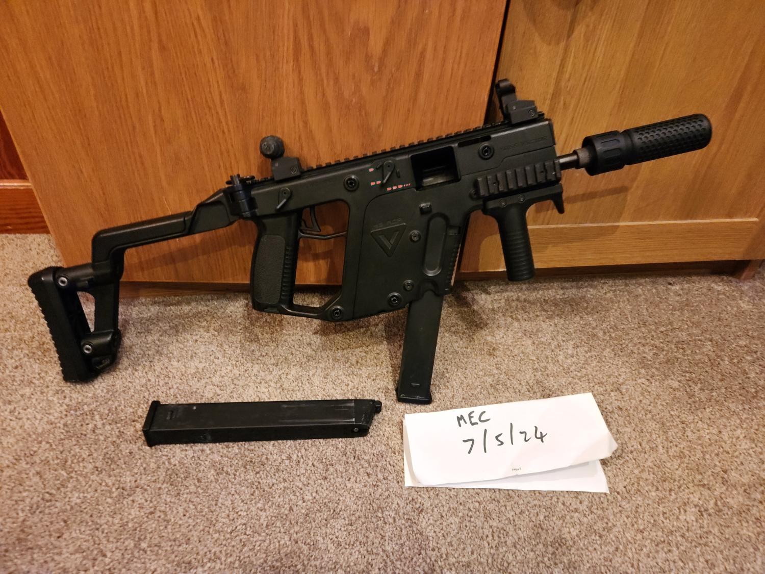 Original kwa Kriss vector, in excellent working order, two gas tight mags and a quick detach knights armament suppressor.