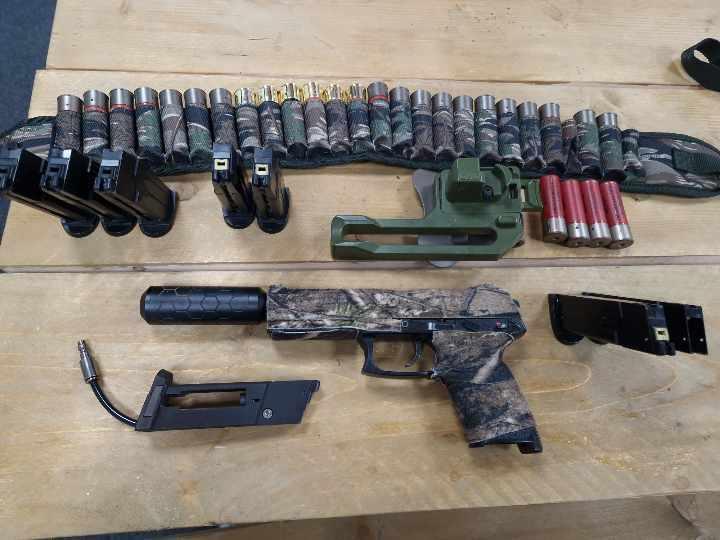 HPA adapter shot gun shell, green gas magazines, holster, shotgun shells + belt and supressor