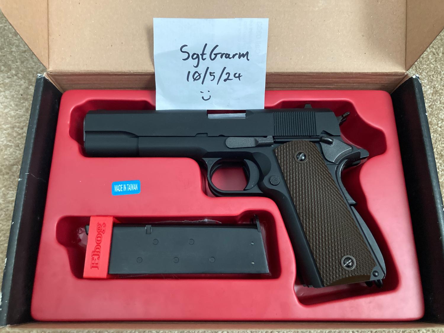 Thinning out the collection to fund other projects. Never been skirmished, just used as a wall hanger. Comes with an EBOG loading tool which makes loading bbs in the 2nd side much easier. Boxed, with manual and 1x gas-tight mag.