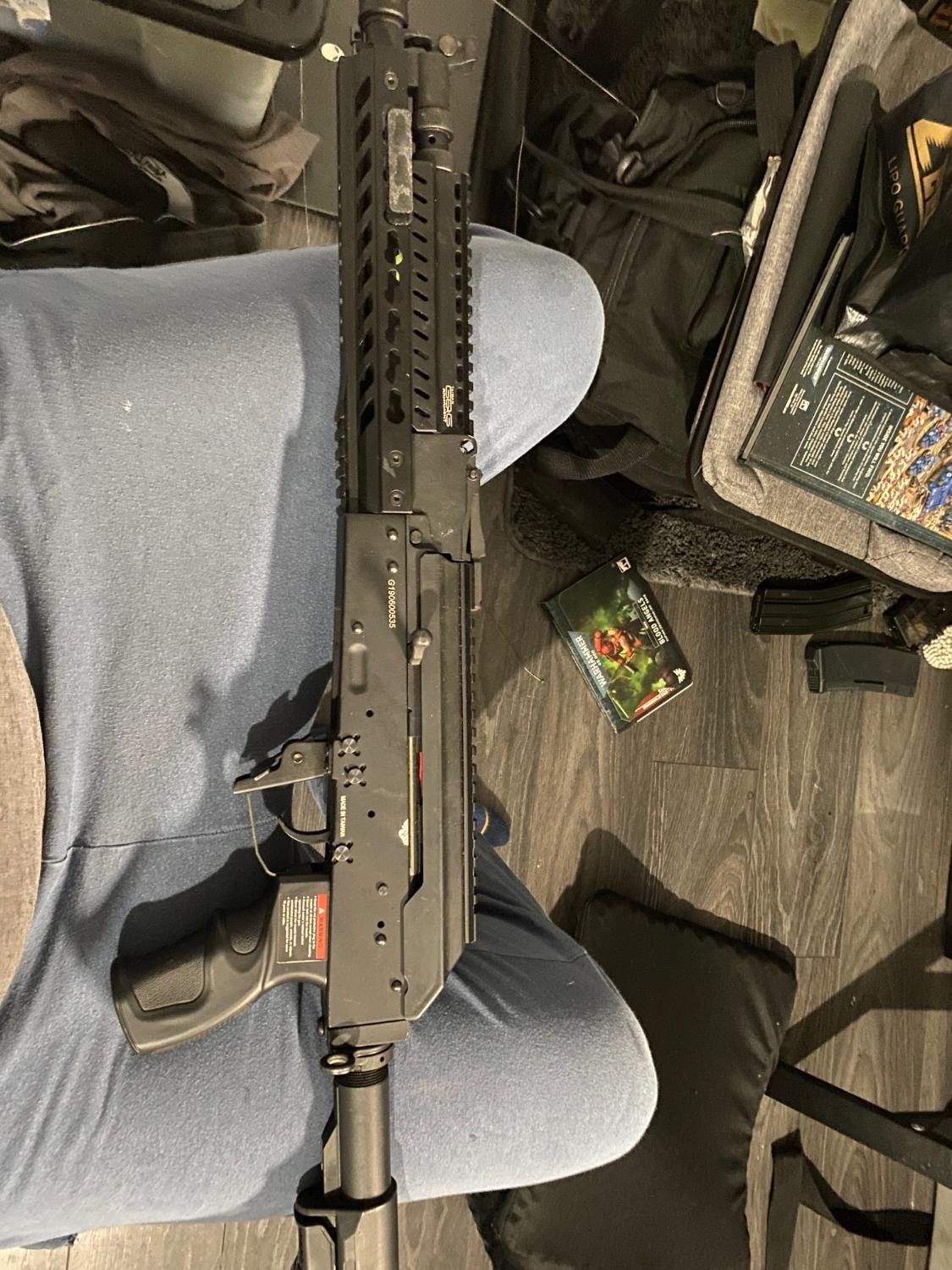Here is my G&G rk74 with 4 official mags and the two 7.4v lipos the only really sign of ware is the selector is a bit rusted but still works as intended collection only from s6 4gr Hillsborough Sheffield will trade for a gas rifle/smg £400 offers welcome contact me via text on 07852734707