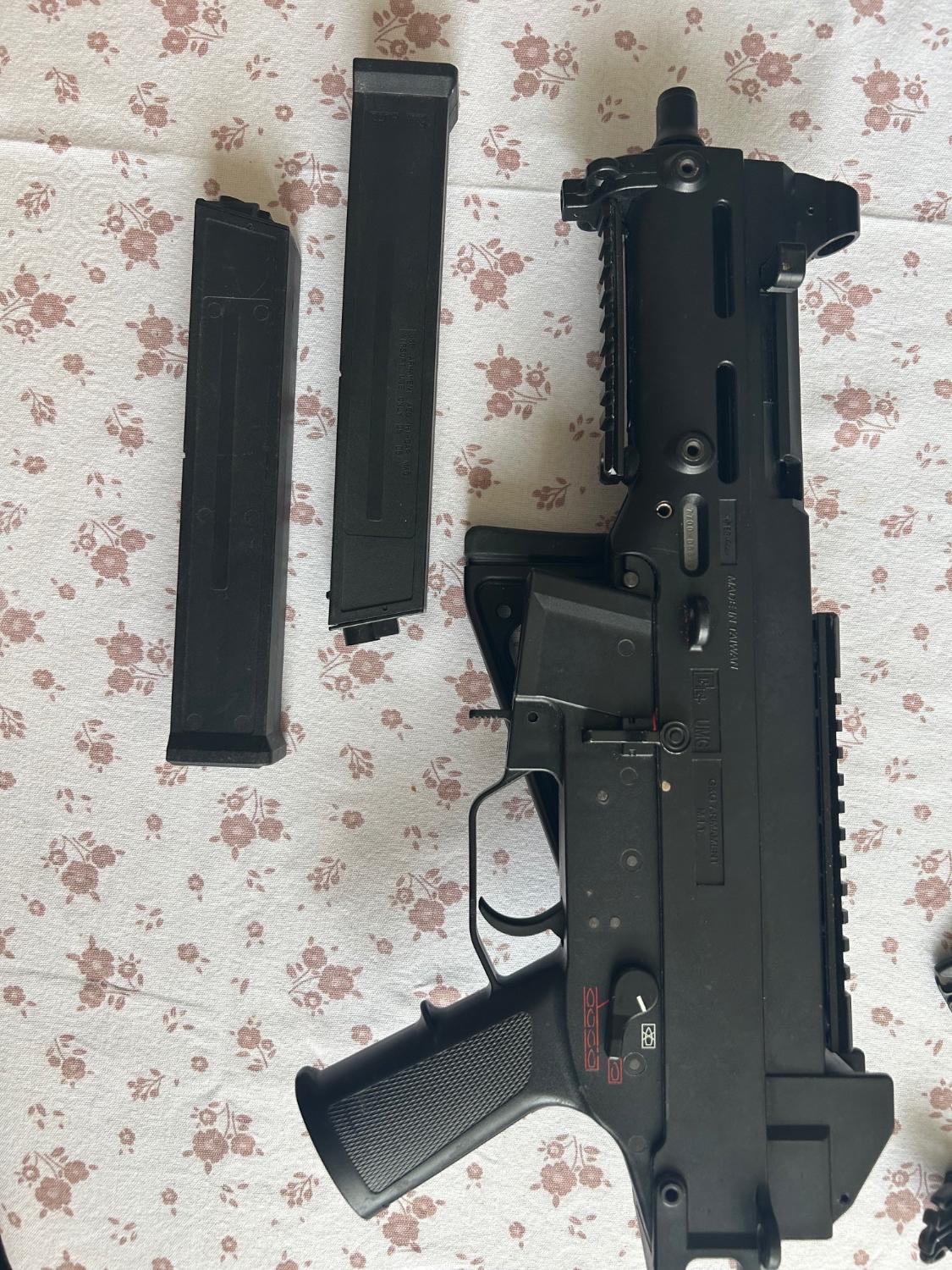 comes with 3 mid caps , i also have one broken hi-cap (appears to be jammed?) which i can include if you wish to fix it.