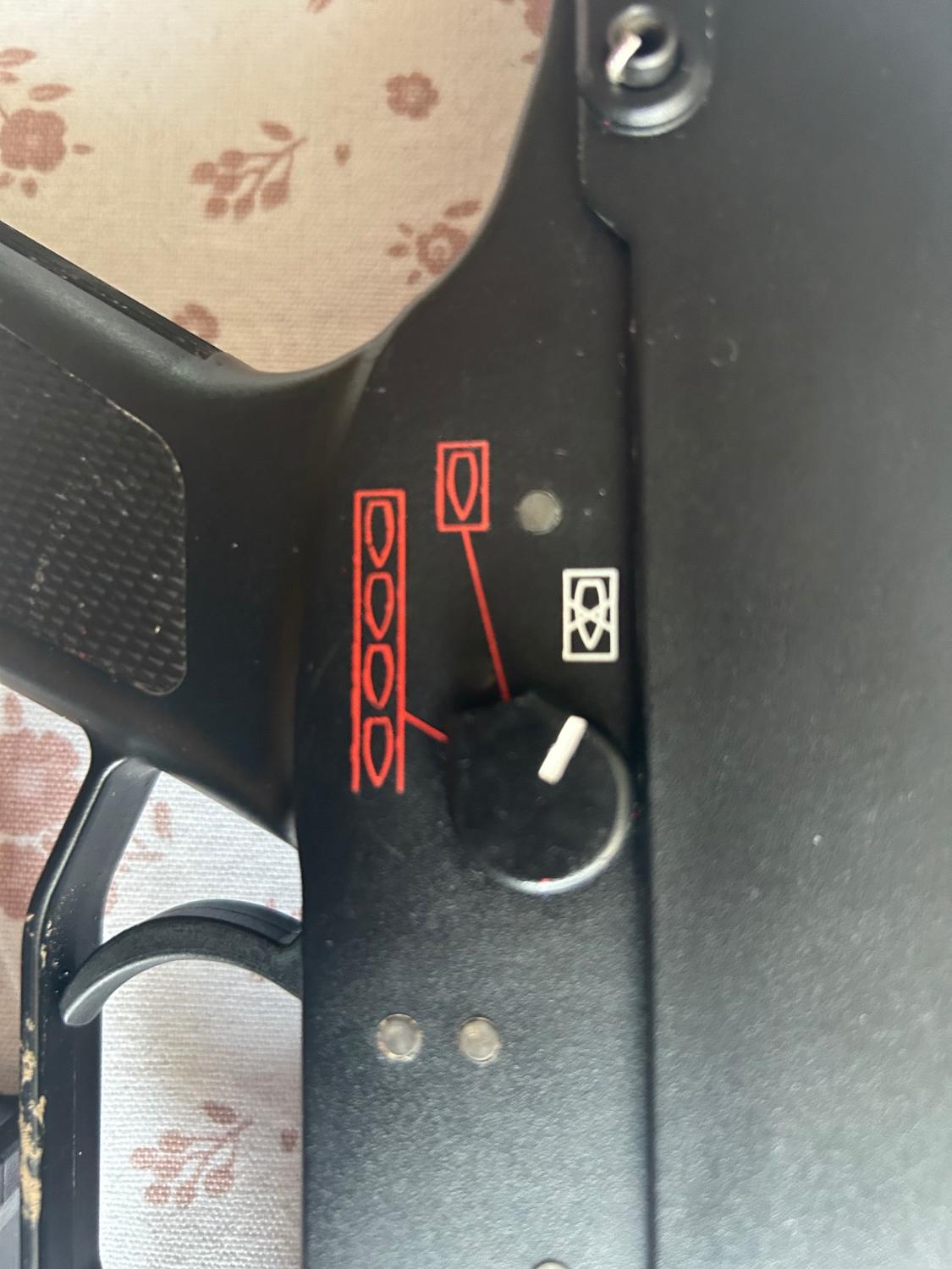 Fire selector on right side snapped (as pictured) but still functional, the left side one is still in perfect condition.