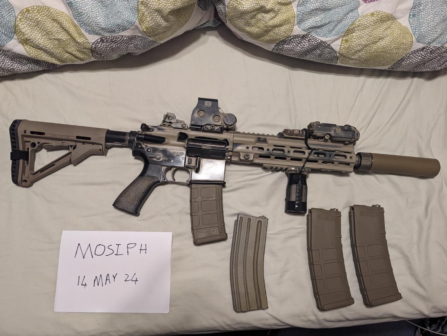 Replica Surefire M300 and PTS syndicate mount, closest thing to the unity tactical at the time. Modified to fit as standard it won’t sit below PEQ