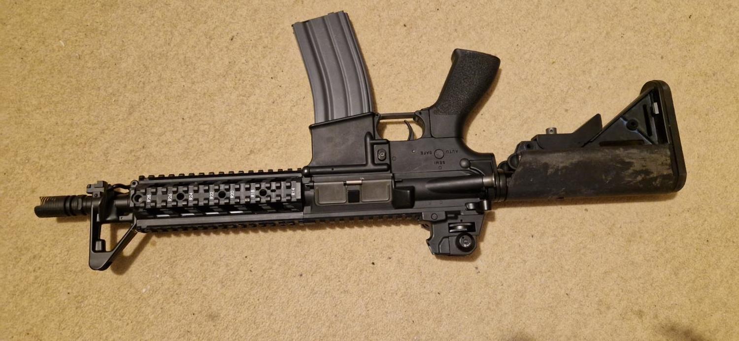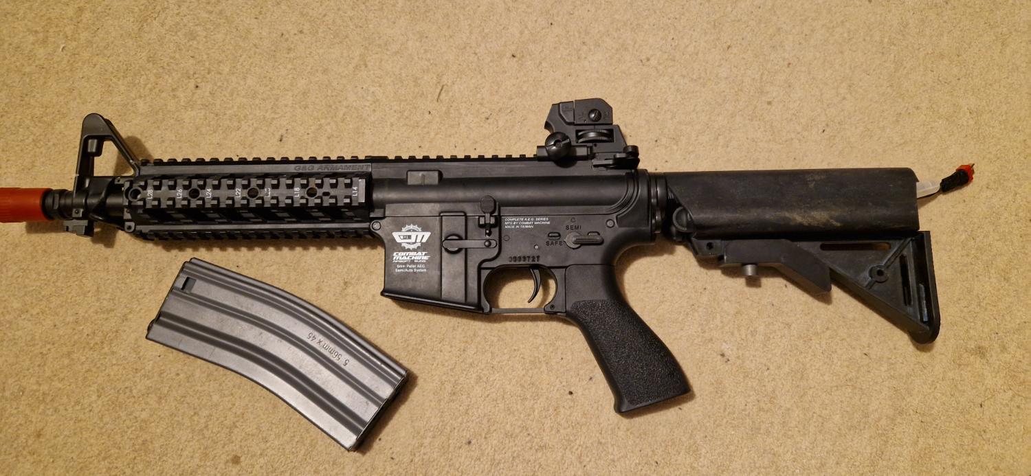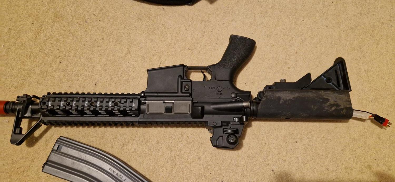 Selling my trusty little raider. No longer in the hobby. My first gun, de-two-toned so there are some slight traces of blue and a bit of mud on the stock. In overall good condition except for the front sight post which is a bit of a mess near the base. Original high cap included. Converted to deans. Not sure what the going price is for these, feel free to offer. Can post for about £10