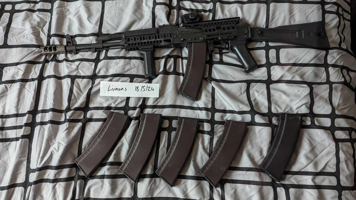 LCT AK74MN with 6 mags, 5 plum 1 black. rep zenitco lower rail, foregrip, dovetail rail, muzzle and charging handle cover. amazon red dot sight. will also come with the pbs suppressor and thread adapter, rk pistol grip and the factory plastic lower handguard and muzzle. also the ebay eotech.