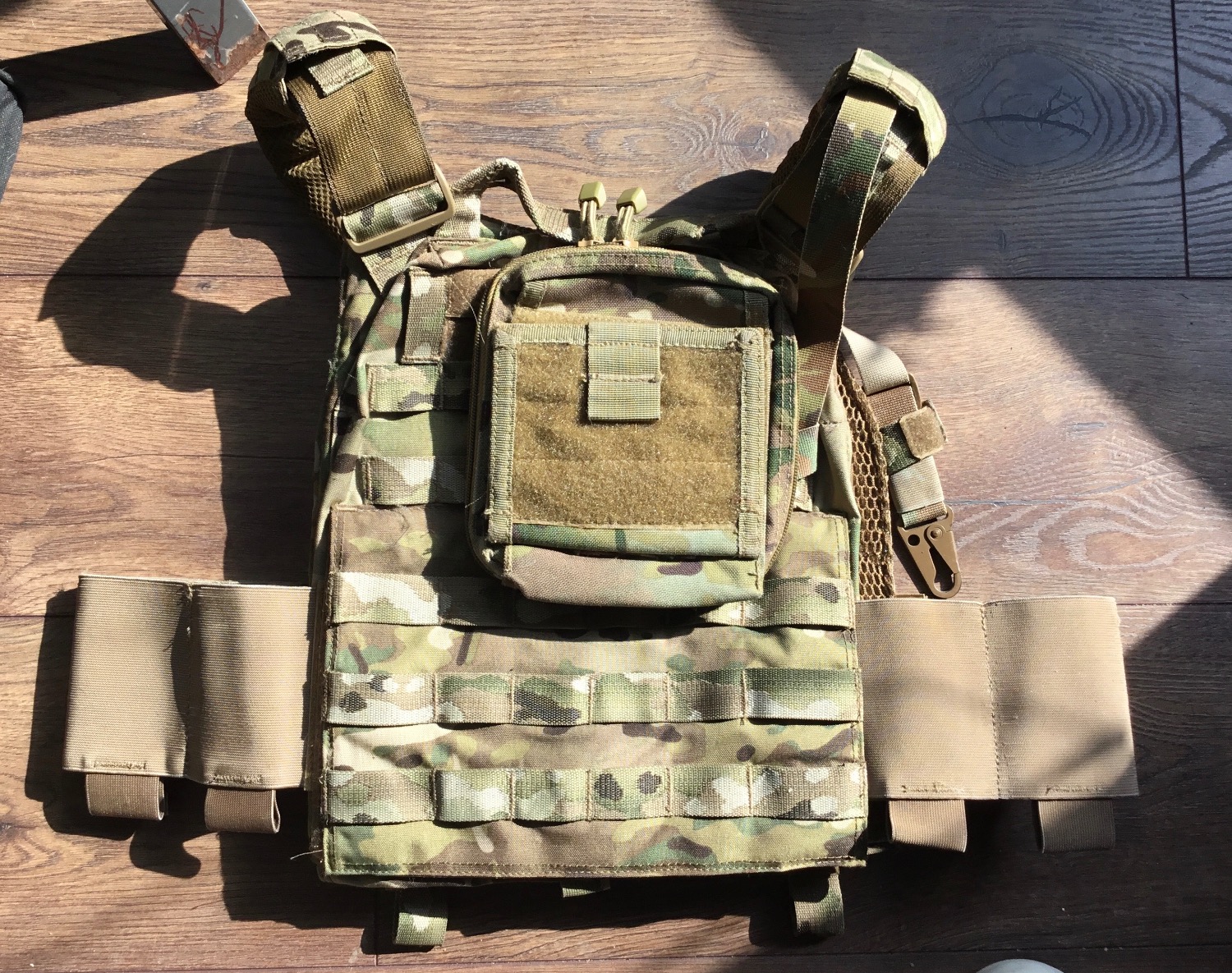Warrior plate carrier,elastic cummerbund has 3 extra slots for mags each side.