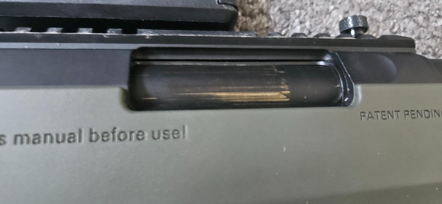 Used fair condition, still cycles and fires but cylinder has been scored by piston due to load indicator catching. Two mag and striker suppressor come with it.