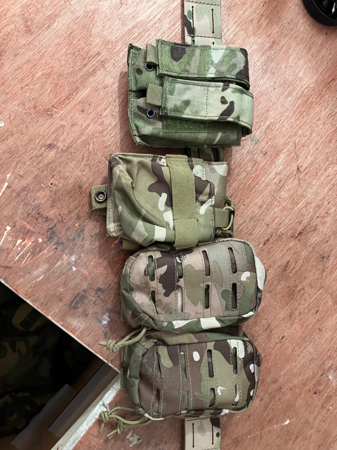 Deadly customs shooters belt, MTP with pouches, 2 utility, 1 double mag pouch plus kydex holster either glock 17 or 1911. adjustable but currently set for a 36”/38” waist