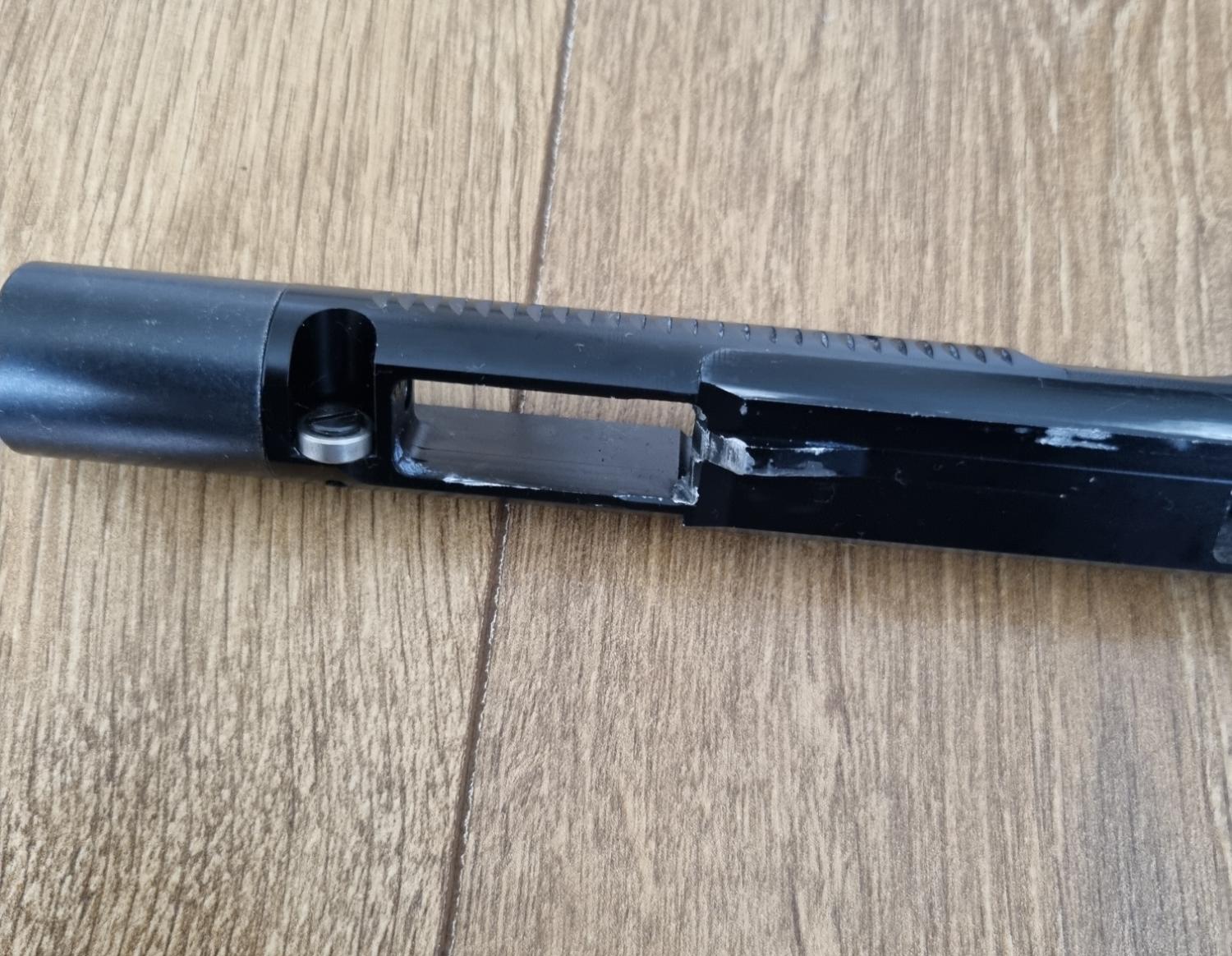 The end cap is steel and combining this with the standard tm bolt gives one of the heaviest bolt configurations giving great recoil.