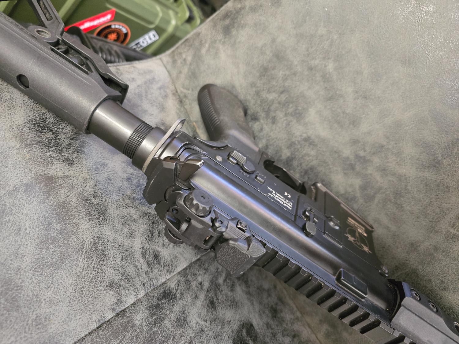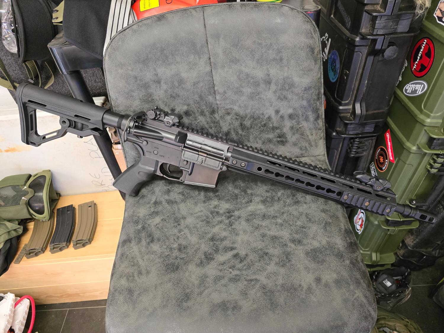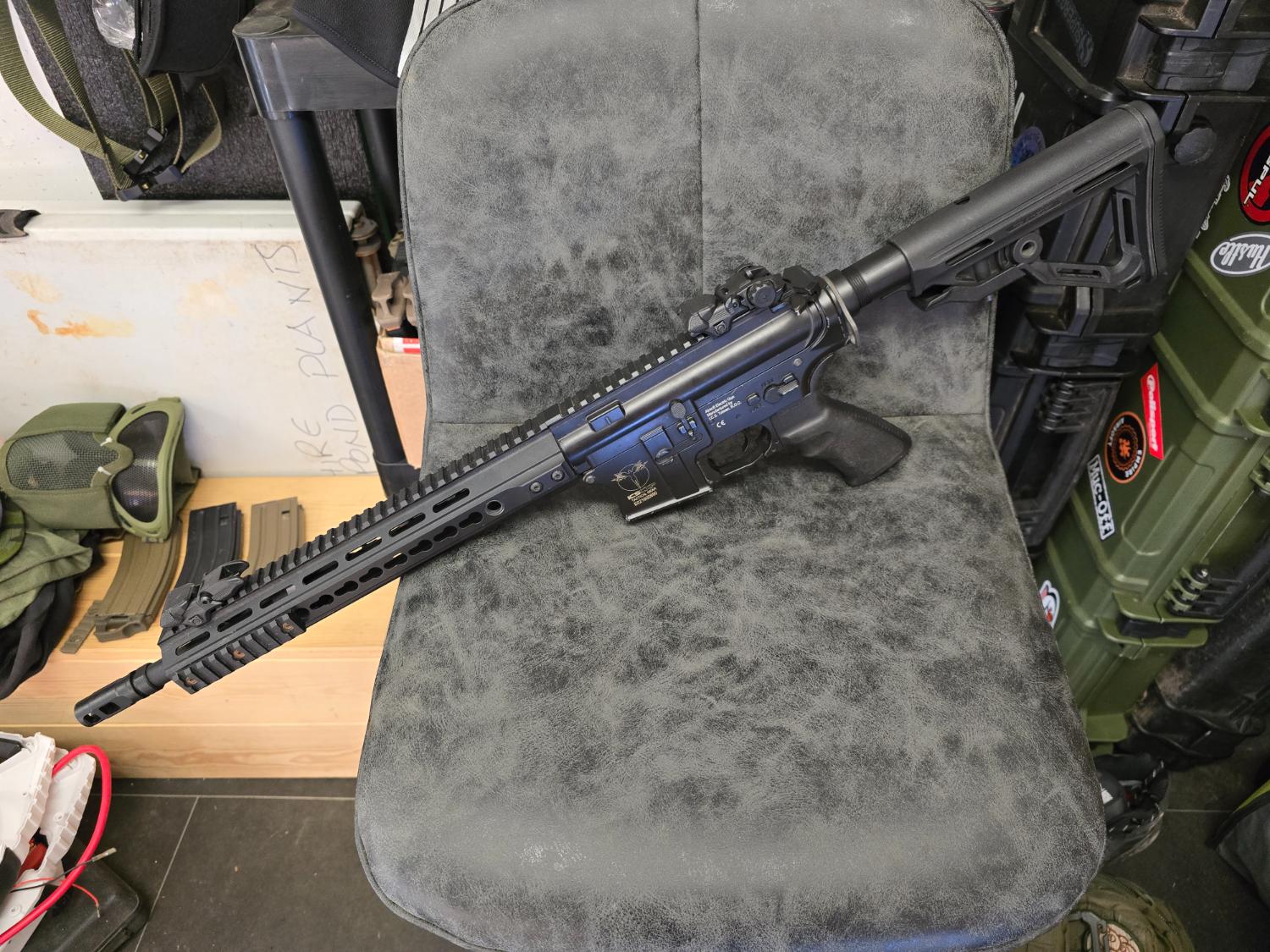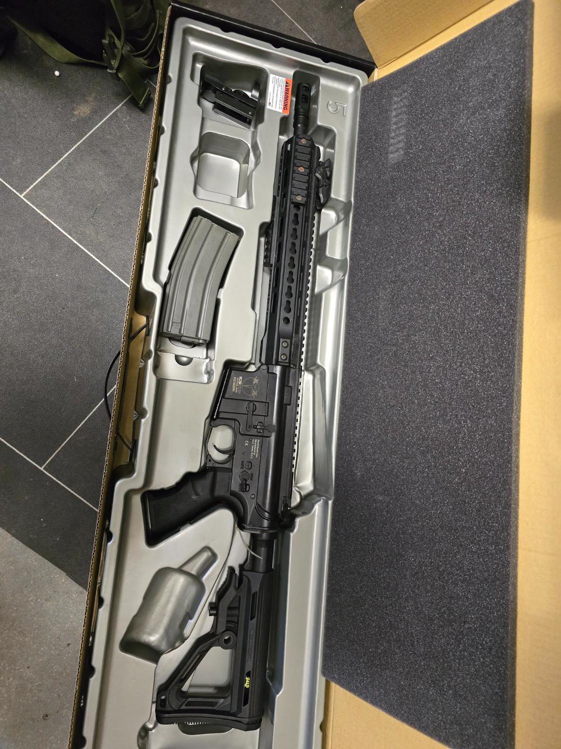 Ics cxp uk1r mtr good strong build and nice gun, this is a real sturdy bit of kit and is great to shoot, it's 286 fps on .28 bb. Comes with everything in the picture, original box, 2 mid caps, has had a new hop rubber fitted.