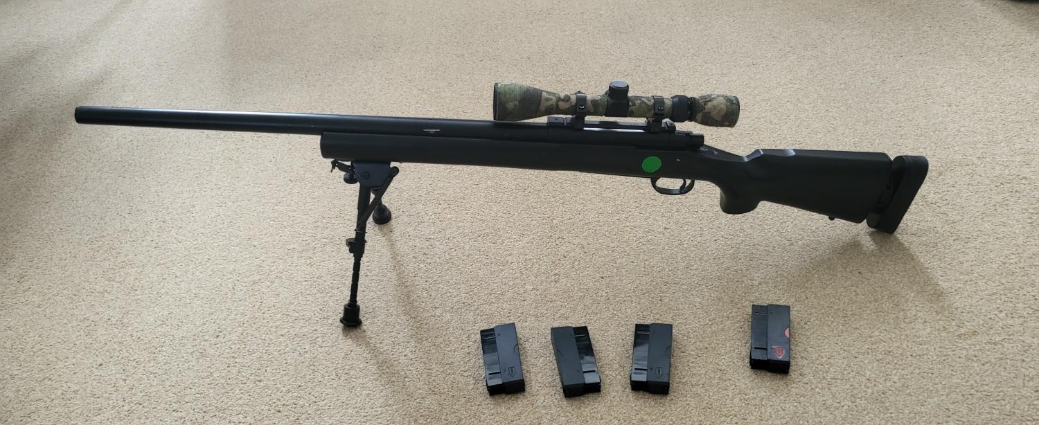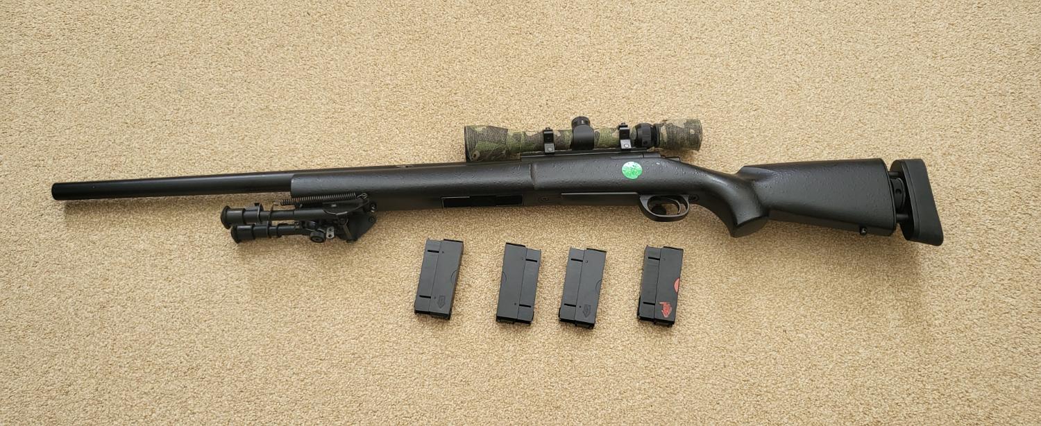 For sale my Black CYMA CM.702 M24 SWS sniper rifle. I replaiced the triger unit with a Snow Wolf M24 . It's comining with 4 mags. scope and bipod