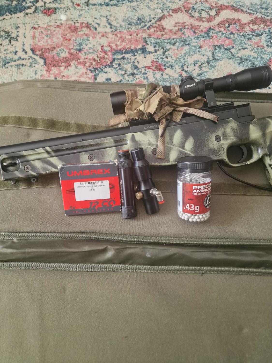Hpa sniper for sale.selling for a friend the gun is upgraded. You will need a hpa tank and you are up and running.