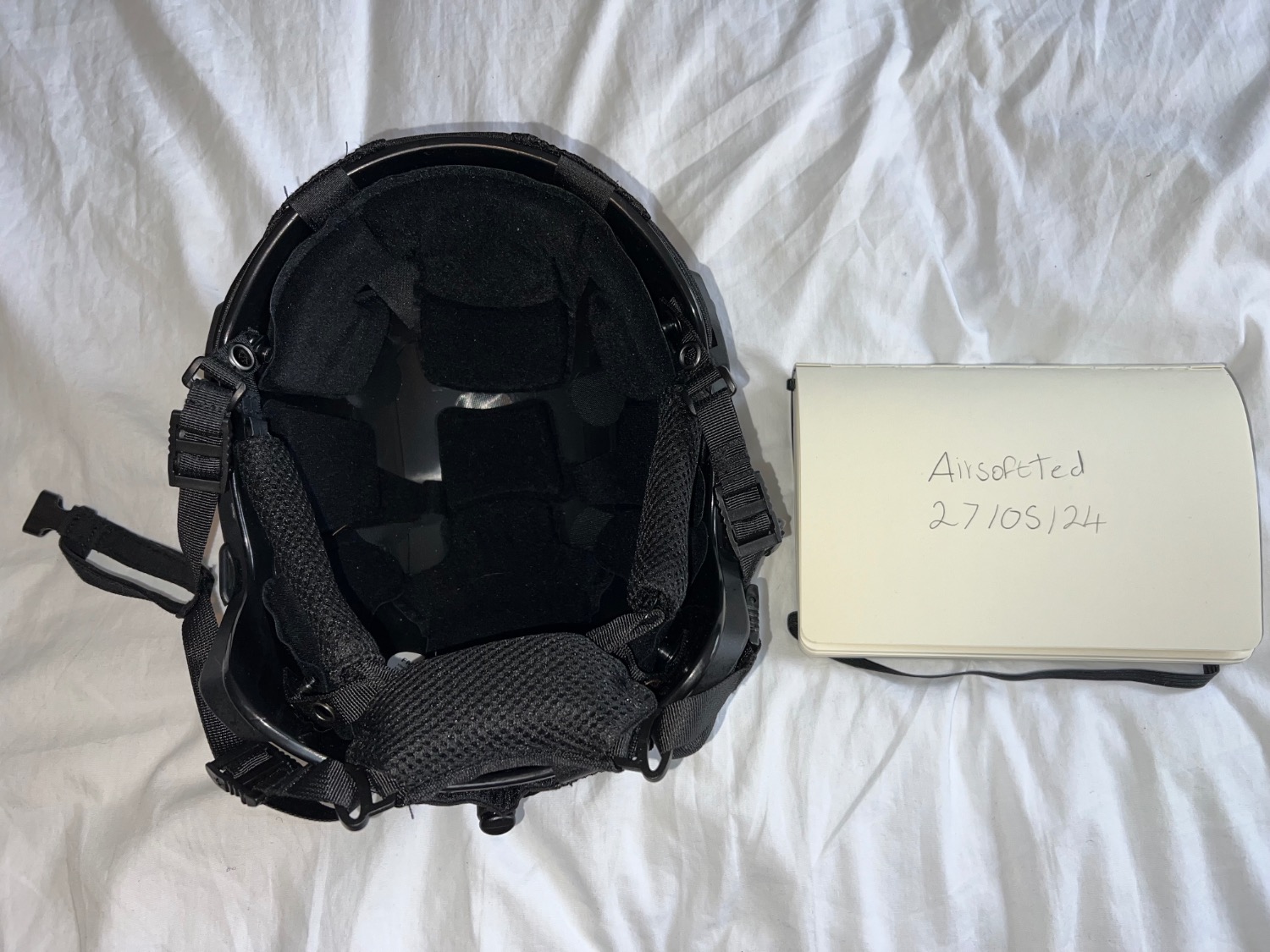 L/XL Black FMA Maritime fast helmet with black helmet cover and replica team Wendy style pads and suspension.