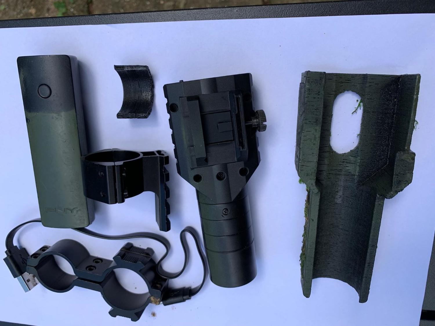 In perfect working order, complete with external power pack for extra run time, 3D printed cover, and mounting brackets for camera and power pack.