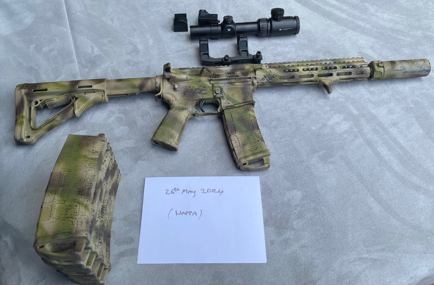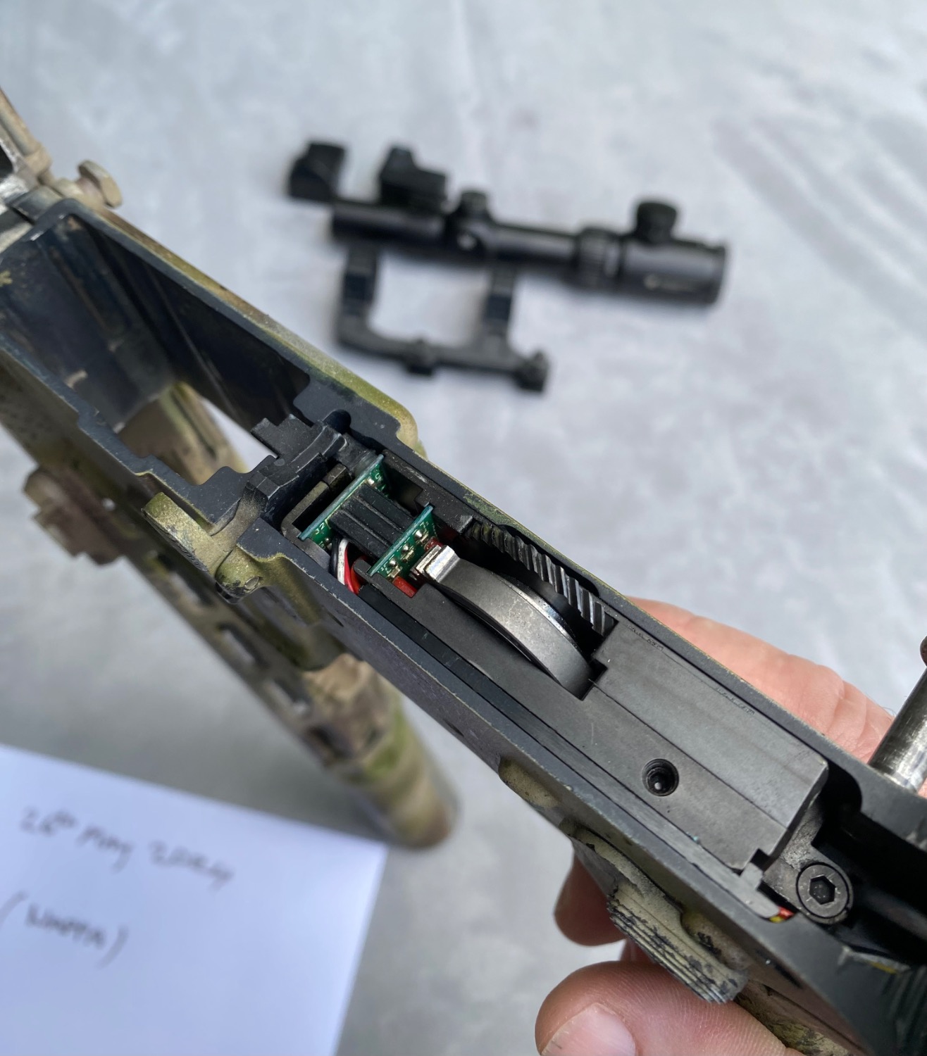 08’ Systema, all systema internals, newly installed Systema gearbox max 2013 version, new cylinder, works flawlessly comes with 7 x pts p mags ctr stock, BCM grip, BCM handgaurd, surefire with KM2 head on a arisaka style mount, not used since service with tac belts he does great work.