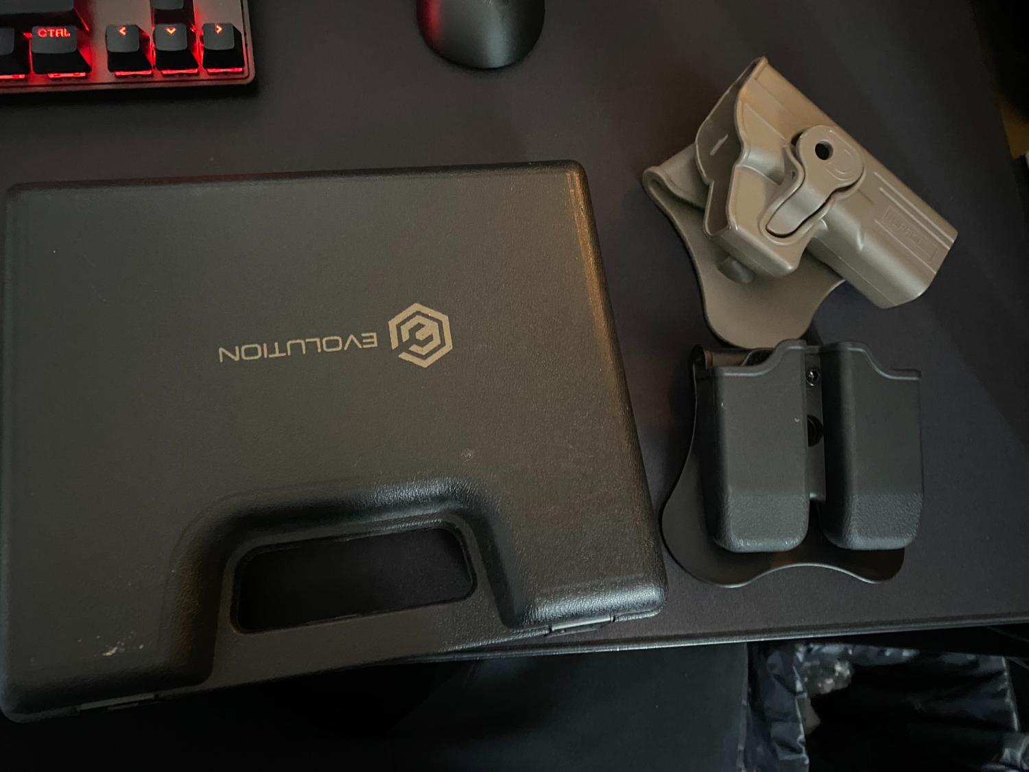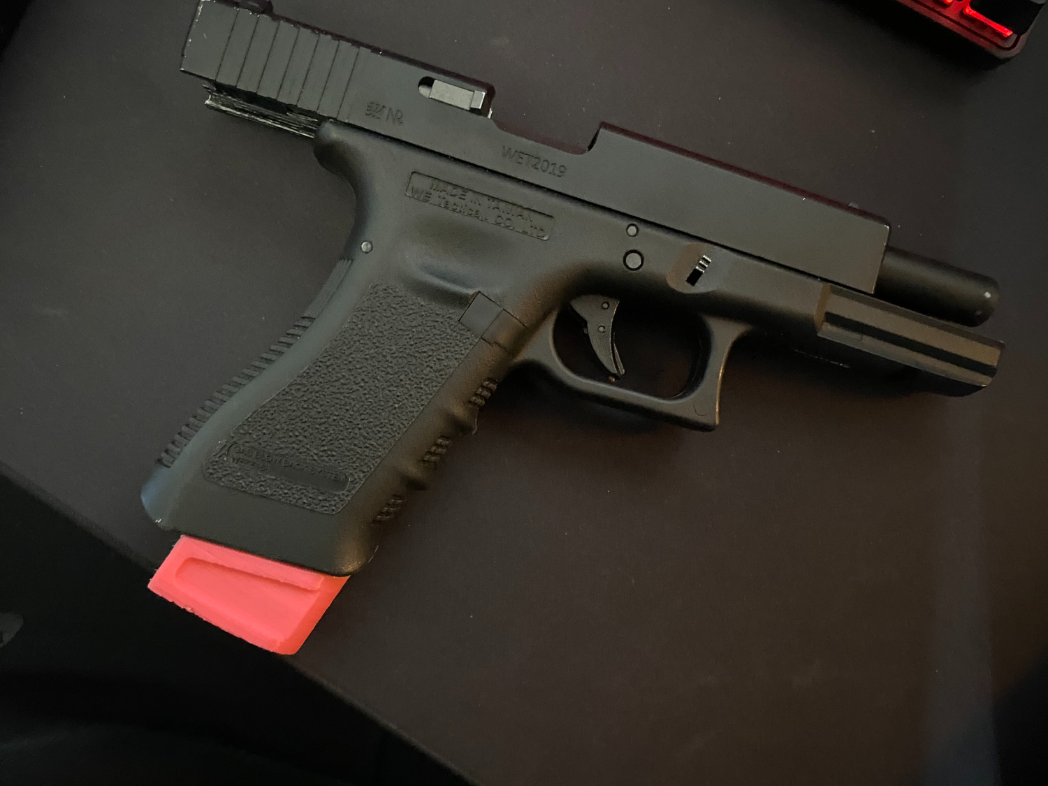 I just got this in a swap but decided its not really for me. as i want to get a VFC or TM glock. works perfectly and fires well and the mags are leak free. a little scratched up but like i said it works perfectly, comes with a holster a 2x mag holder and 3 magazines, and the pistol case. the Pink base plates are 3d printed and came like that in the swap so i do not have the original base plates. Postage only, 24 1st class shipping. im open to offers but nothing silly.