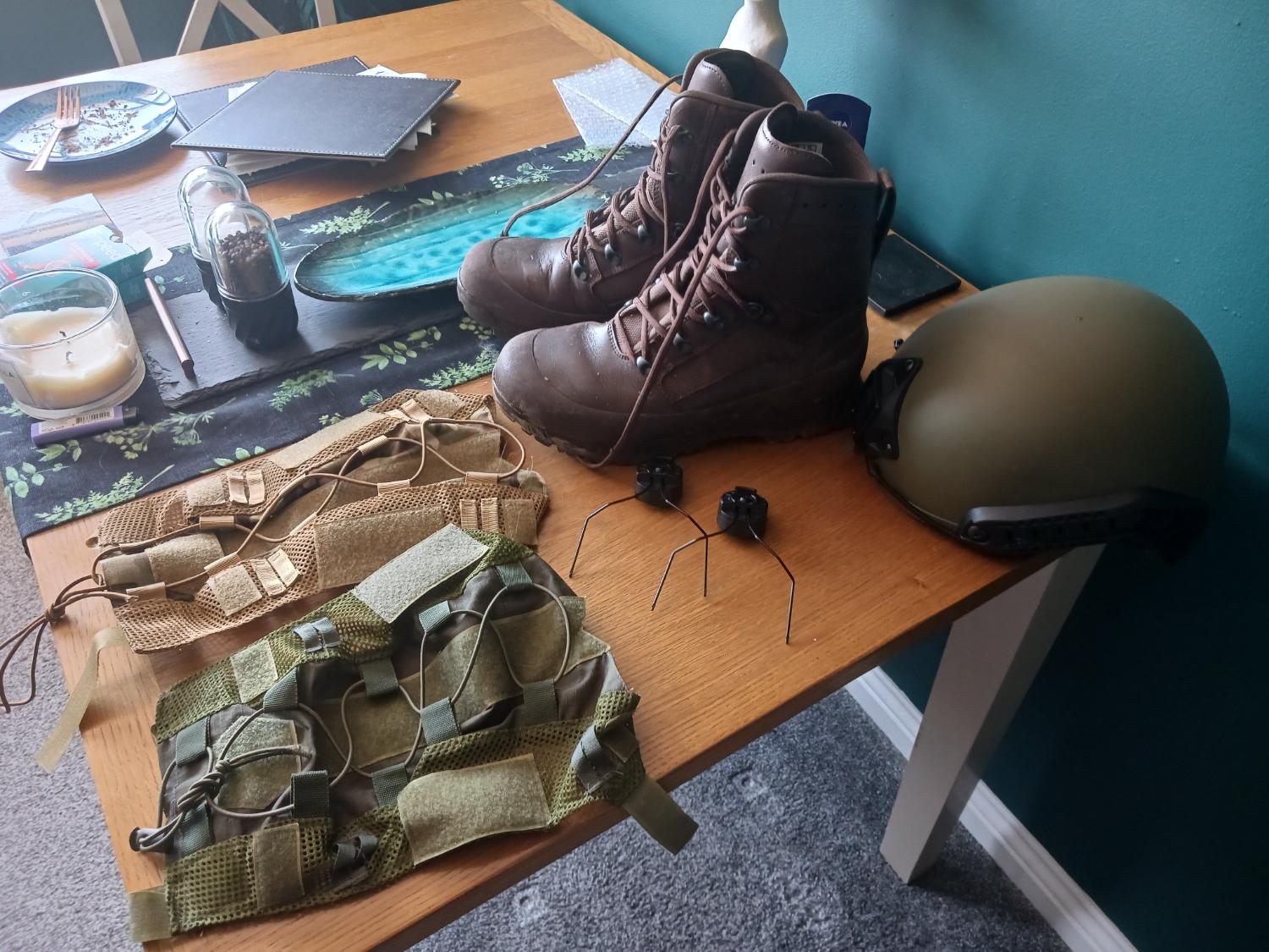 FMA L/XL fast helmet. Includes extra comfort padding, arc headset mounts, multicam and olive drab covers. Lightly used and good condition. - £40 including P&P