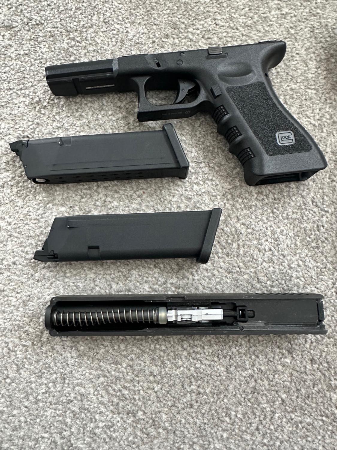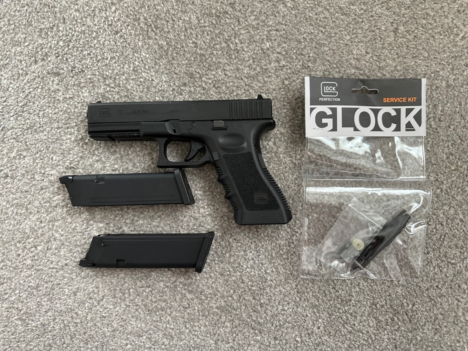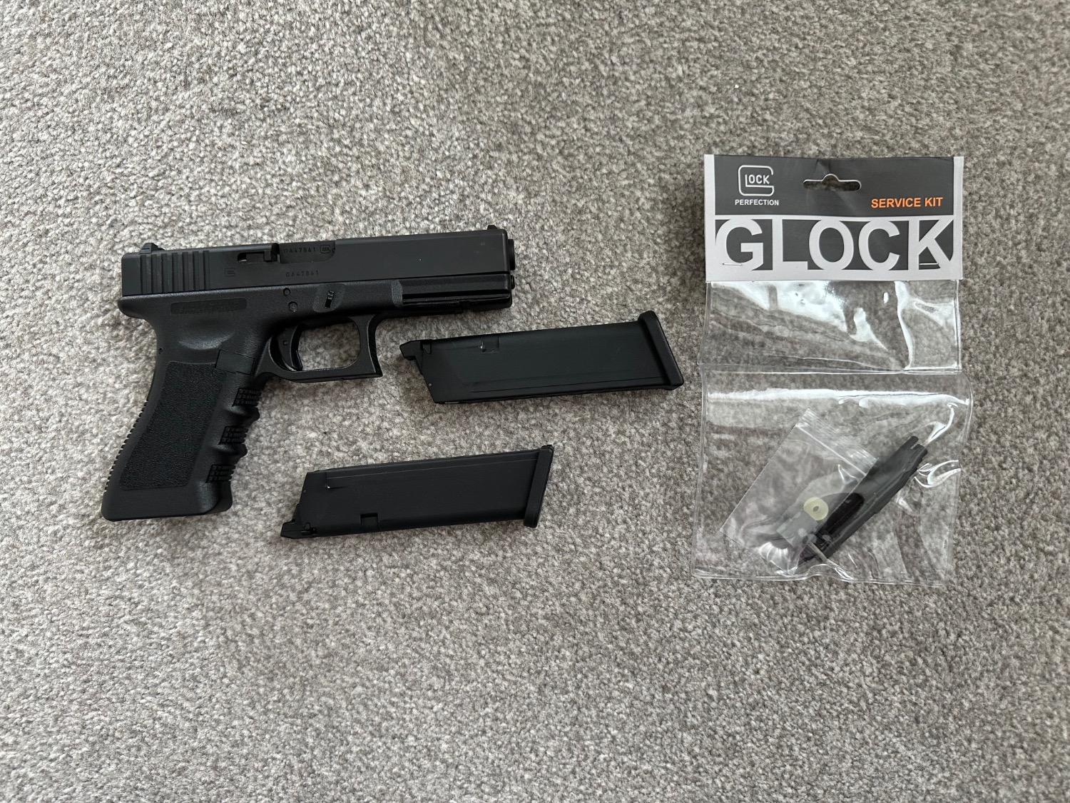 Umarex Ghk glock gen 3 premium model. Includes service kit, one extra magazine, has been fitted with flamingo hop rubber and the hop unit has been changed to maple leaf which makes adjusting the hop a lot easier.