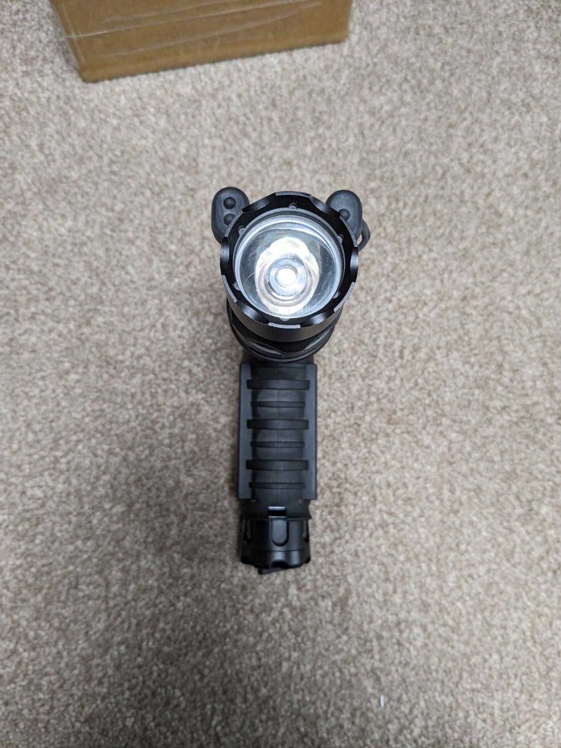In good working condition. Has navigation LEDs which work off the back pressure pad and main torch which works off grip pressure pads can also be switched to permanent on.