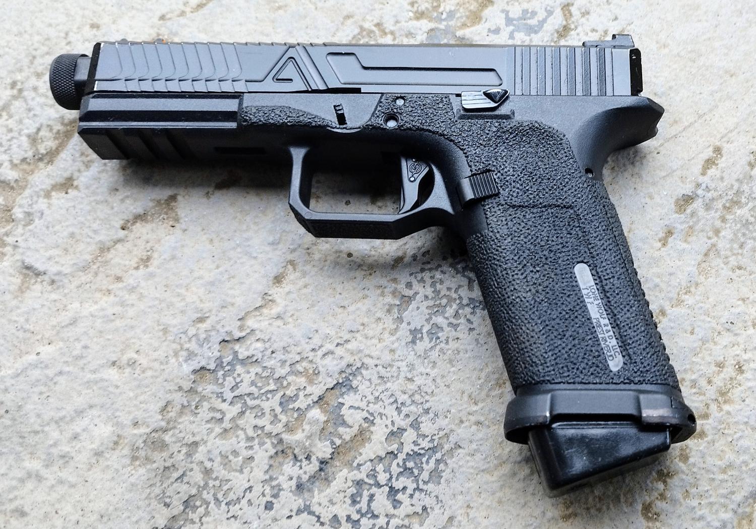 Has installed a tactical barrel by Pro Arms or you can have the original silver barrel if you don't like this threaded one.