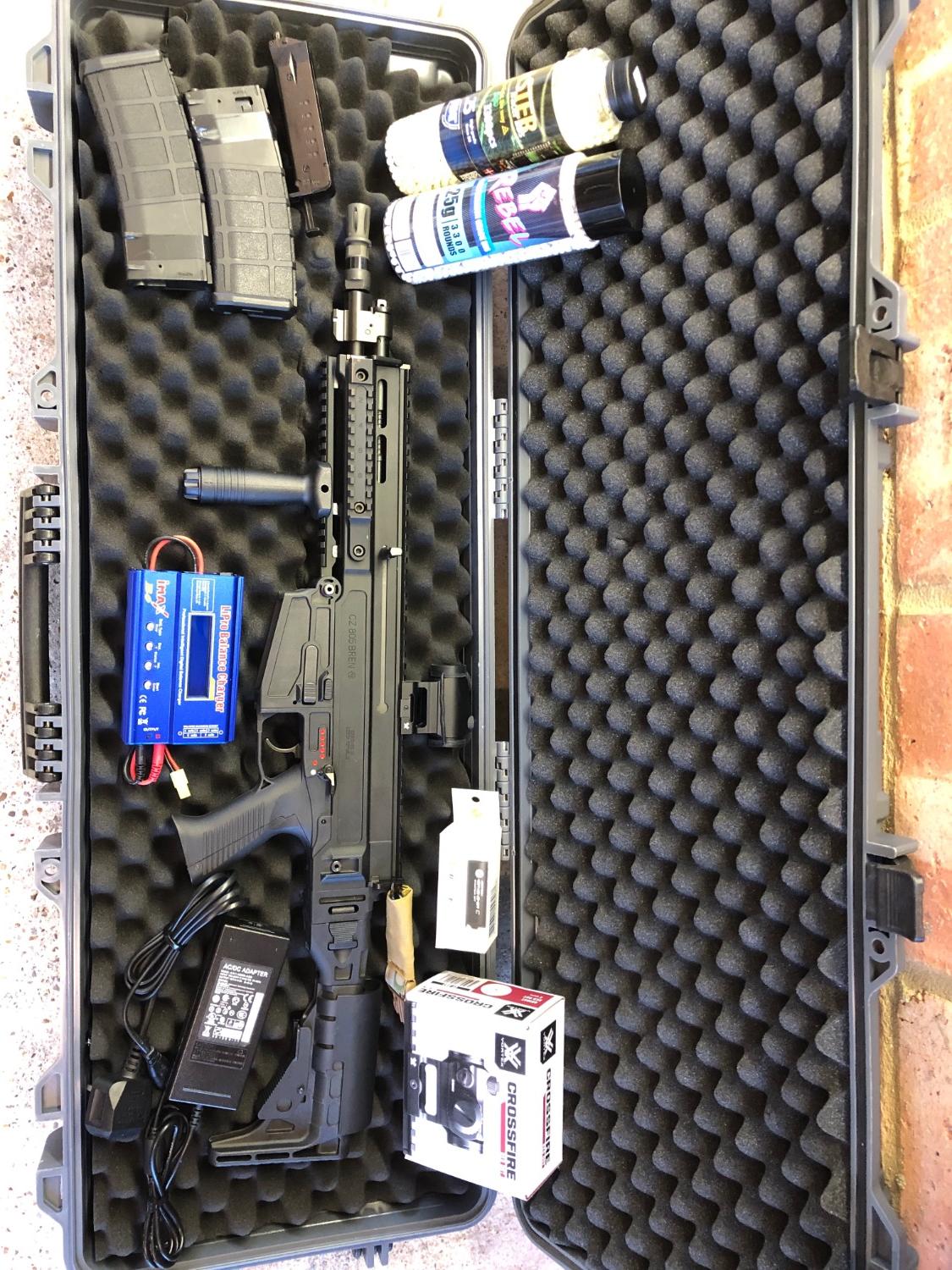 I purchased the rifle new and it has been used a handful of times. Everything in the photos is included apart from the scope, the scope has been used on another rifle. There is also 2 Lipo batteries. They have always been de-charged and balance charged when ever used. The rifle is pushing 334fps confirmed last Saturday at my local range. The tracer unit is less than 2 weeks old. My work circumstances have changed and it looks like I won’t be taking part in the sport as much. I am 43 years old and look after my toys, the rifle has been wiped down with a damp cloth after each use, I have also cleaned down the barrel with alcohol on clean tissue with the barrel rod. I am looking for £300 with the item being collected. I would be happy to post at the buyers cost and organisation.