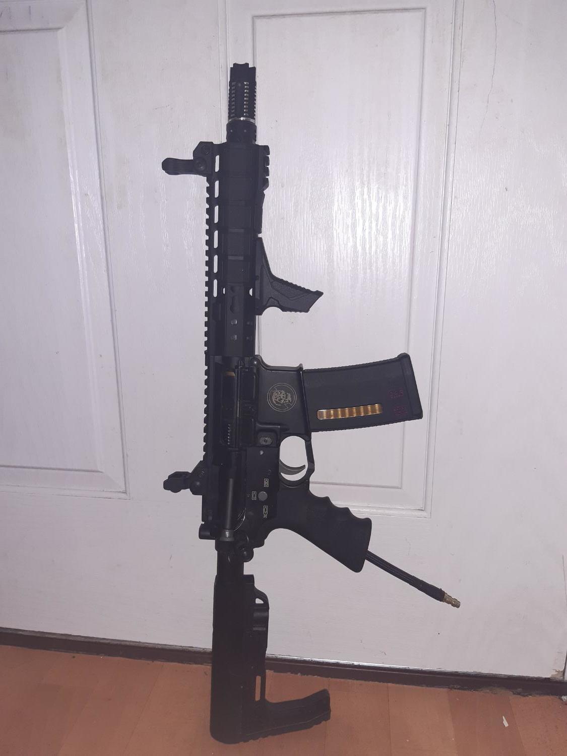 Has a Hogue pistol grip, amped DGIL, will be sent without muzzle device or stock as these have both been moved onto other RIFs - will **not** include mags.