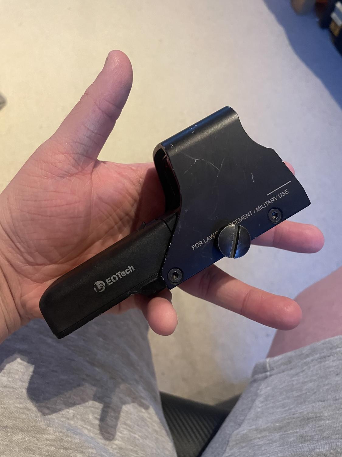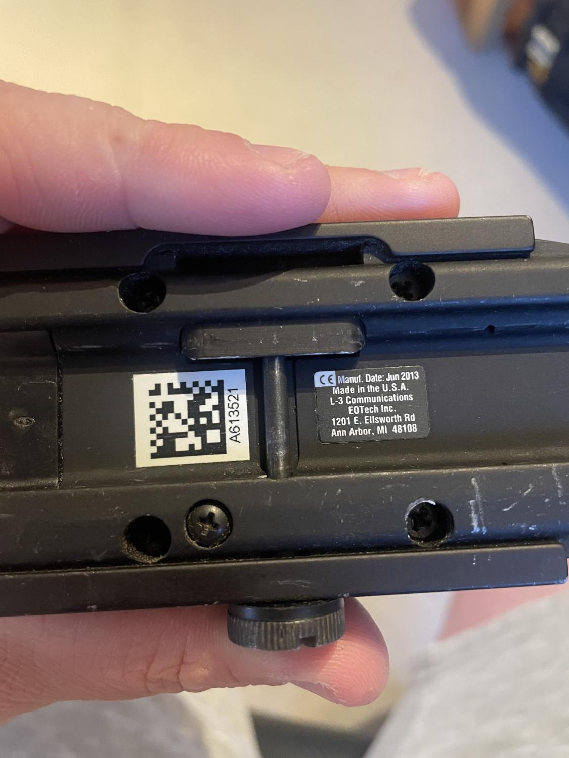 this is a gen eotech 512 DOM 2014, has a little delam but nothing to effect it, holo is still really bright and works perfectly, comes with protective lenses
