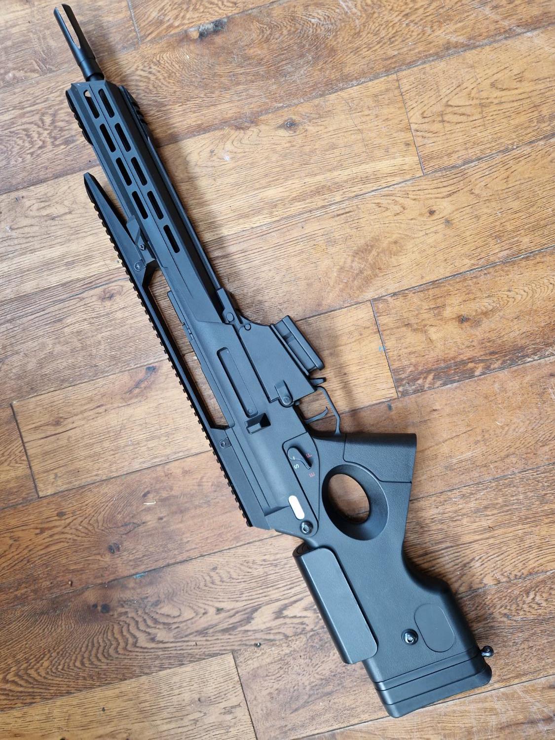 Novritsch ssr63 in good used condition. I got this as part of a swap and shoots well but I prefer my sniper rifle. I've swapped the spring to get it below 400fps (my local site limit for dmr) but I have the original spring as well. From memory this was shooting 435fps on 0.2g bbs with the original. The trigger is really snappy and the rifle feels well made. It's a good gun it's just not for me. It's wired to deans and locked to semi. It comes with original spring and low cap mag (25 rounds from memory).