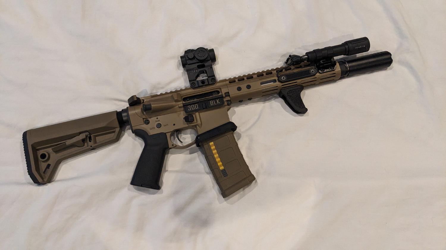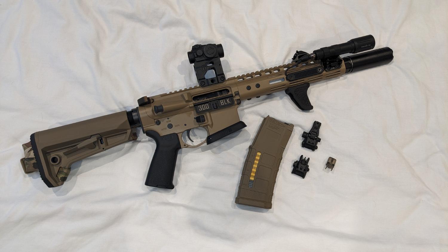 All of the external accessories you see in the pictures are included in the price, i.e. Sig red dot and unity riser, torch, angled modlite button, federal concepts talon, Bavtac Cable Tidy, Ferro Concepts style sling with QD mount, Surefire style suppressor, Shortened Barrel to make it more cqb length, C&C Tac extended magpul style mag release, BJ Tac HRF magwell and a real magpul MOE grip. I can include the original barrel and flash hider if you want as well, just lmk.