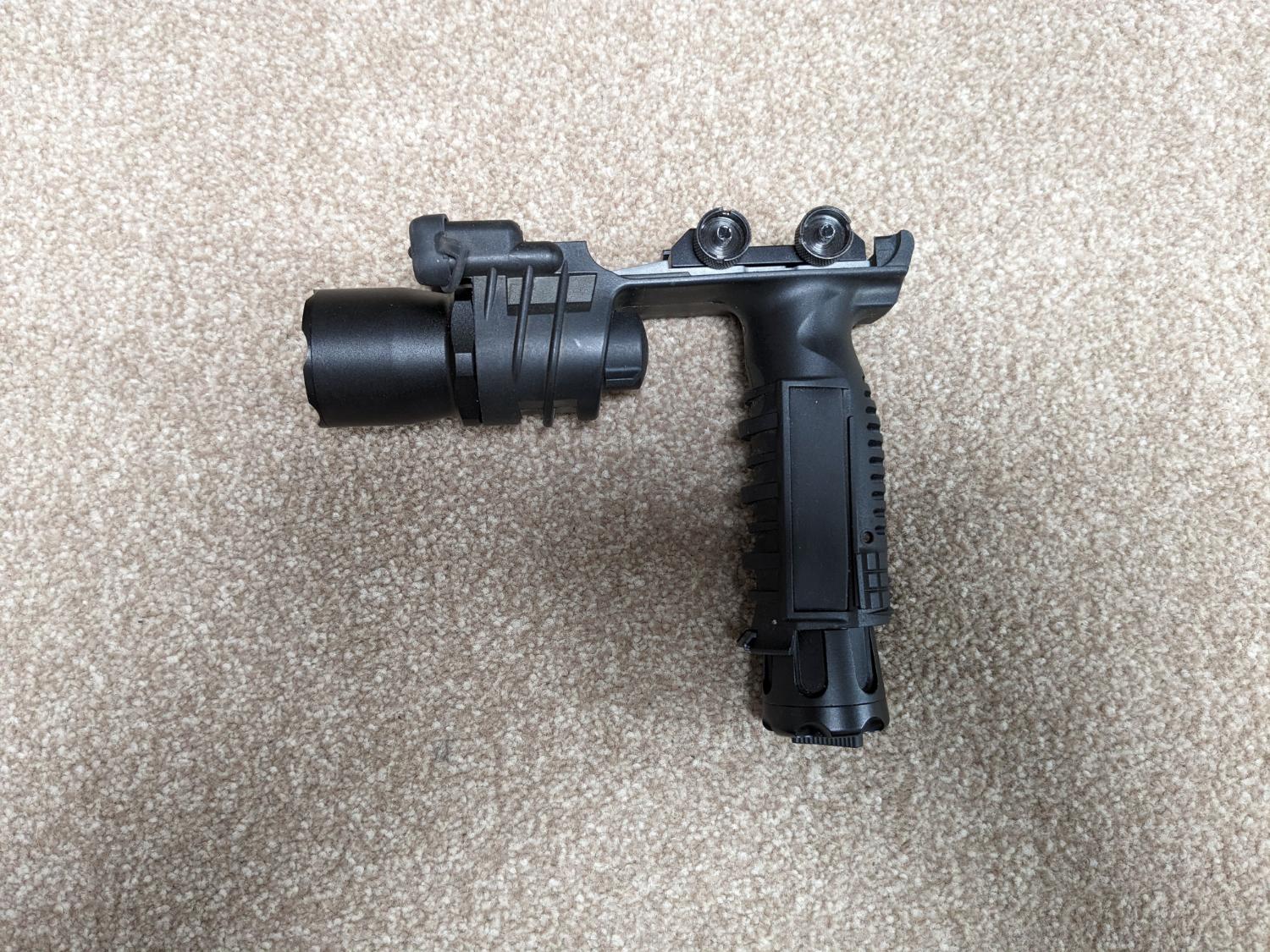 In good working condition. Has navigation LEDs which work off the back pressure pad and main torch which works off grip pressure pads can also be switched to permanent on.