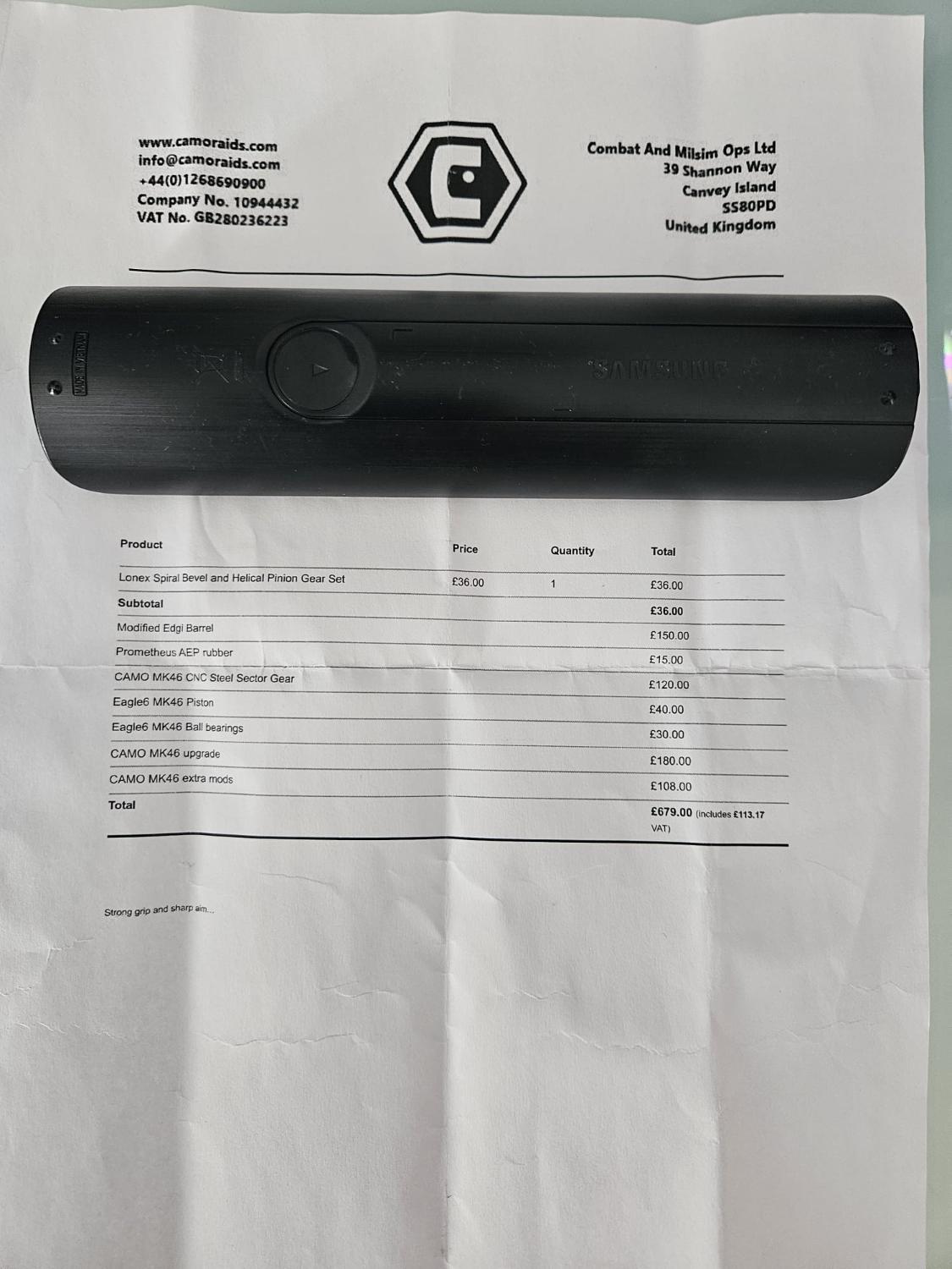 TM MK46 with a bit of an ultimate package up for grabs. Fielded once which was at Defiant RAID 2024, when I say fielded, picked up, shot a few hundred rounds & that was it. Very (very) good condition as you'd imagine for something used once! Package comes with:
