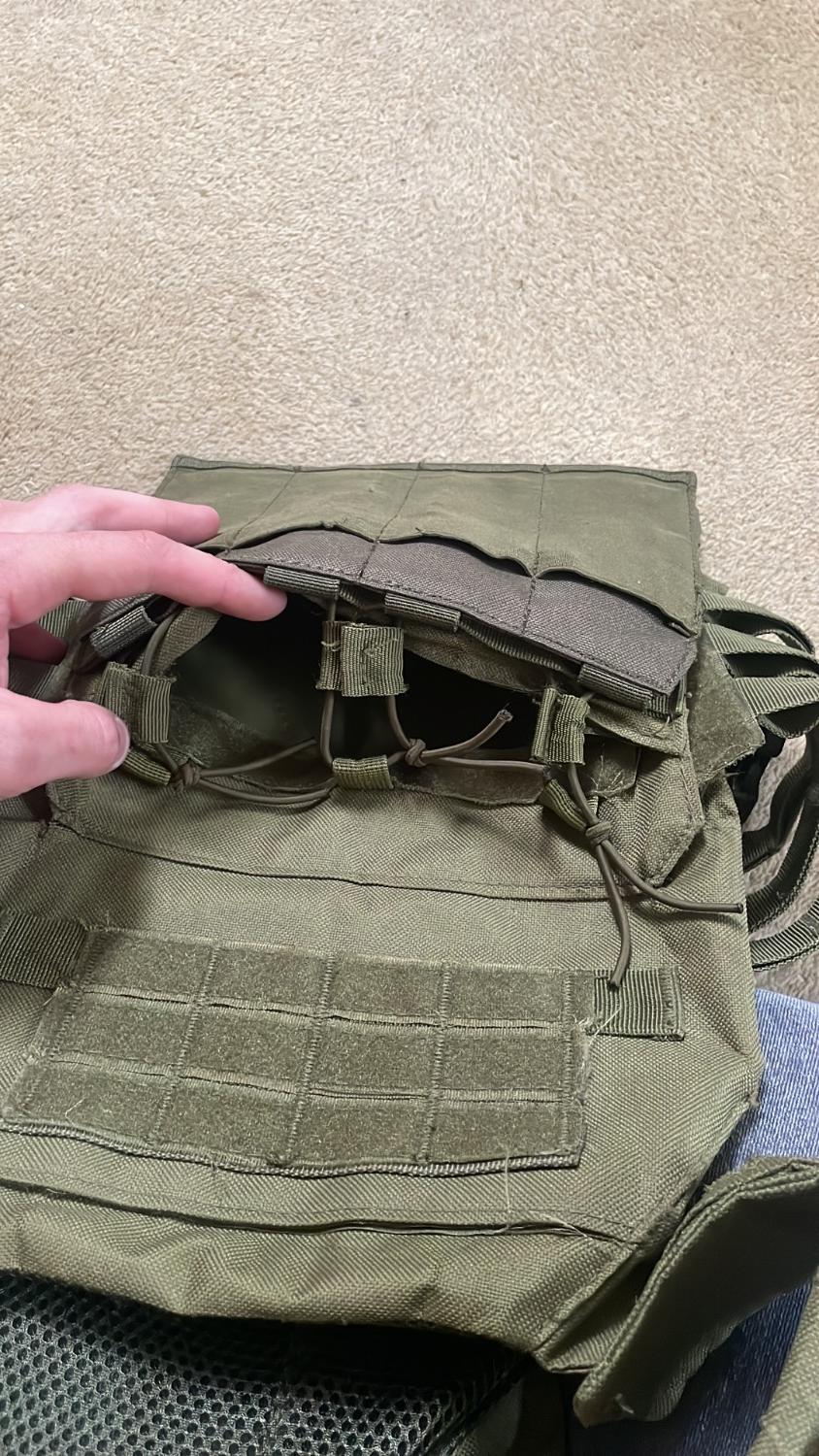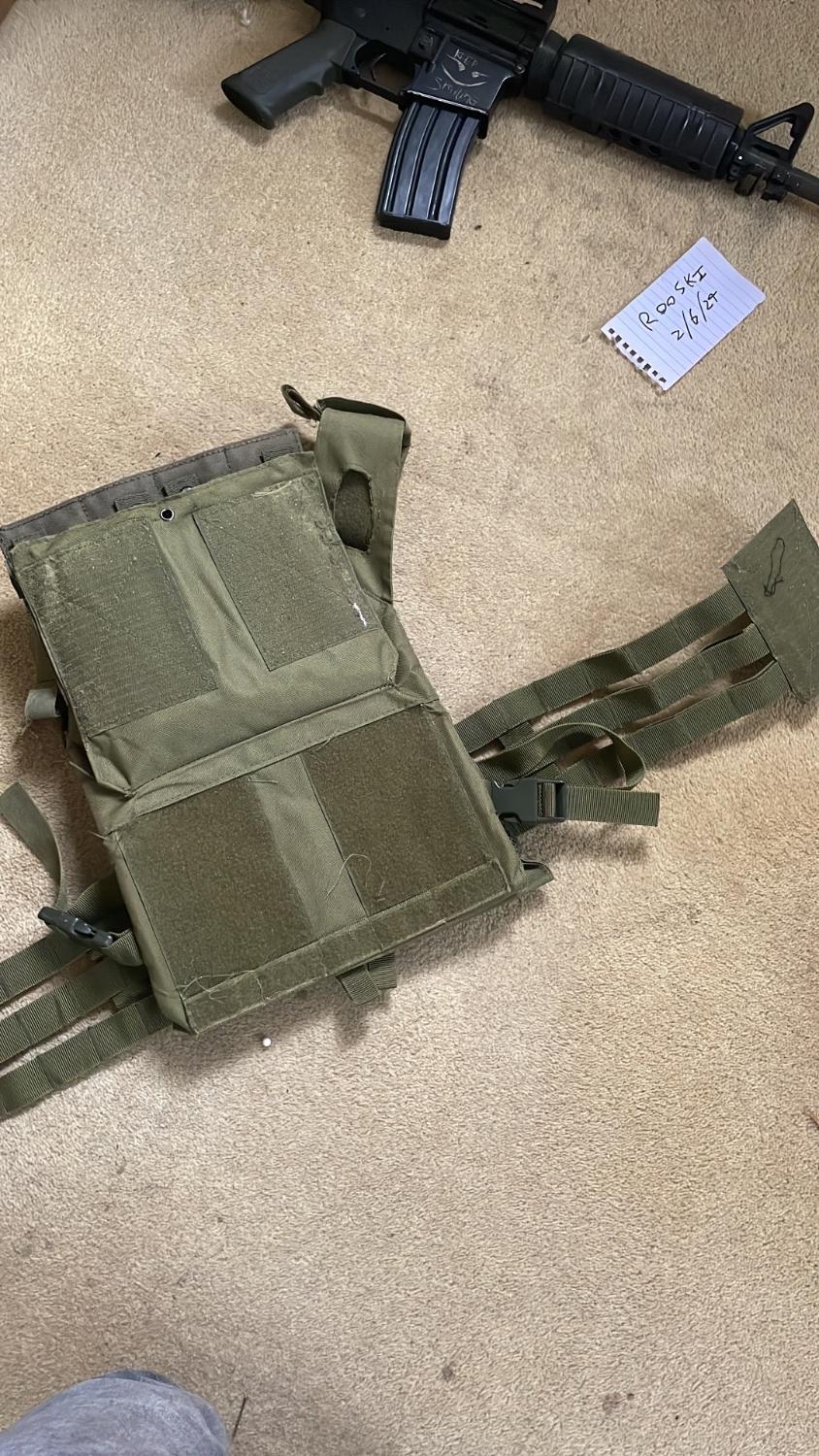 Used but good. Comes with quad smg elastic pouch on the front as well as triple M4 kangaroo. Fits around a medium