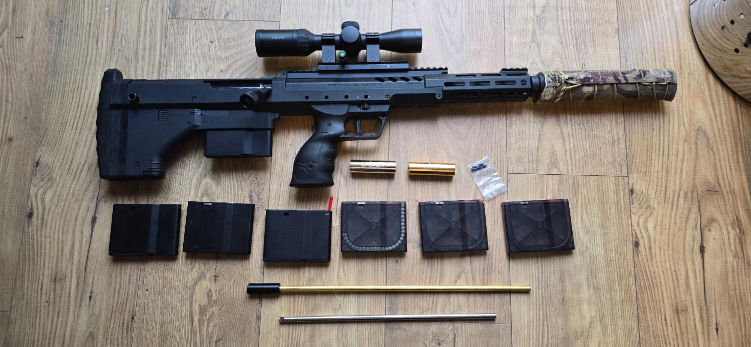 Possible trade for high end AEG possible kriss vector, Srs A2 16" covert fully upgraded. Fast hop, 70 degree silverback bucking, 400mm edgi barrel, wasp piston, rapax spring, full top rail. Also comes with spare springs, 7 mags, dts suppressor with new baffles, edgi 330mm barrel, original brass barrel and hop unit. £500. Can include Hawke panorama scope for £70. Crazy quiet and deadly accurate, absolute laser on .45s. only selling as moving away from sniping.