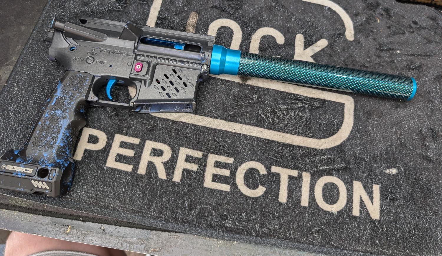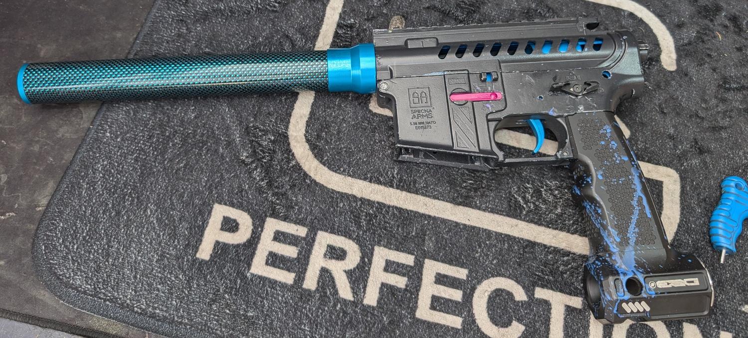 Core airsoft DSL2 Carbon Fiber Silencer in blue